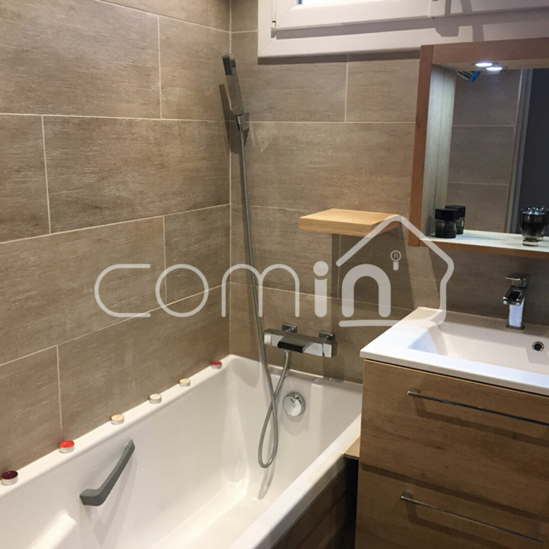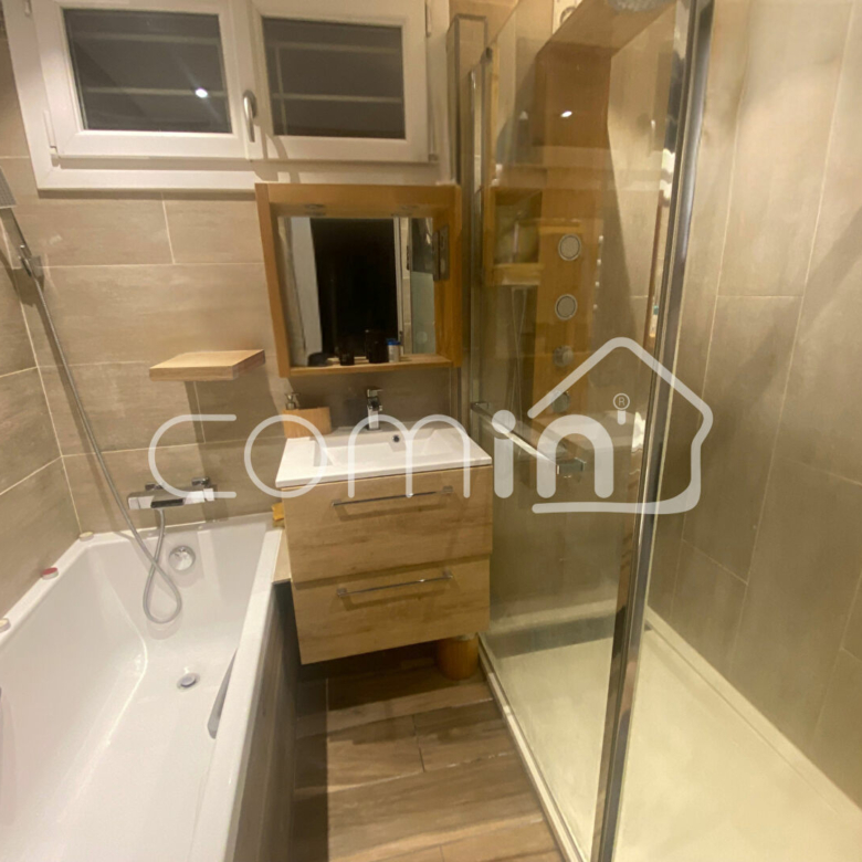 Entrée avec placard, une cuisine entièrement équipée et aménagée avec cellier (avec emplacement lave-linge + sèche linge), un double séjour de 34m2 idéalement exposé avec accès direct sur balcon, une chambre avec de nombreux rangements, une salle de bains comprenant baignoire et une grande douche à l’italienne (160x90cm) et un wc séparé avec lave-mains).