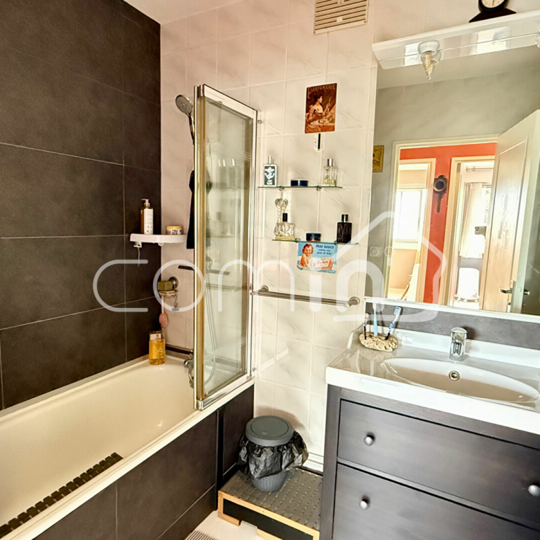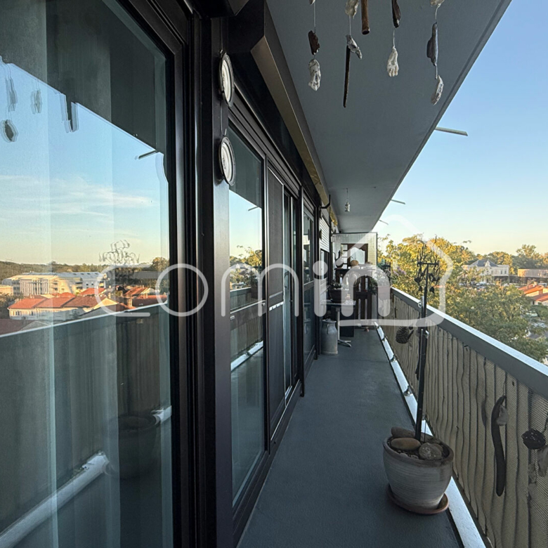 L’appartement se compose d’un séjour double pouvant être transformé en chambre, d’une cuisine aménagée et équipée, de deux chambres, d’une salle de bain, d’un WC séparé et d’un grand balcon.