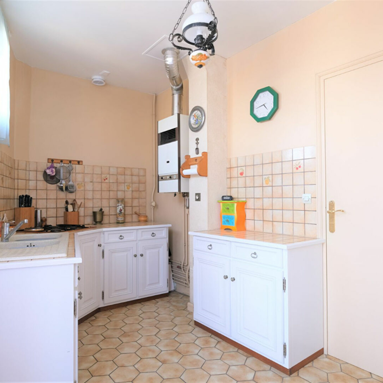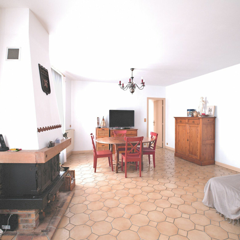 Il est composé d’un porche, d’une entrée et de sa penderie, d’une cuisine équipée et aménagée, d’un grand séjour lumineux de 29m² et de sa cheminée, de 2 chambres de 9m² et 14m², une salle de bain et d’un wc séparé.