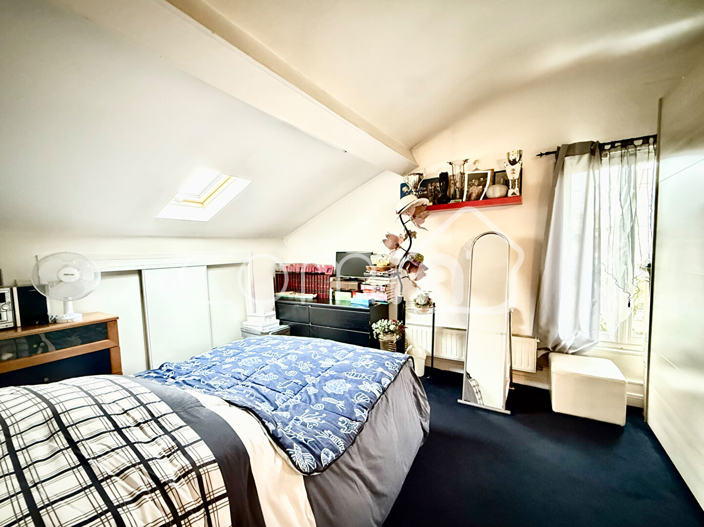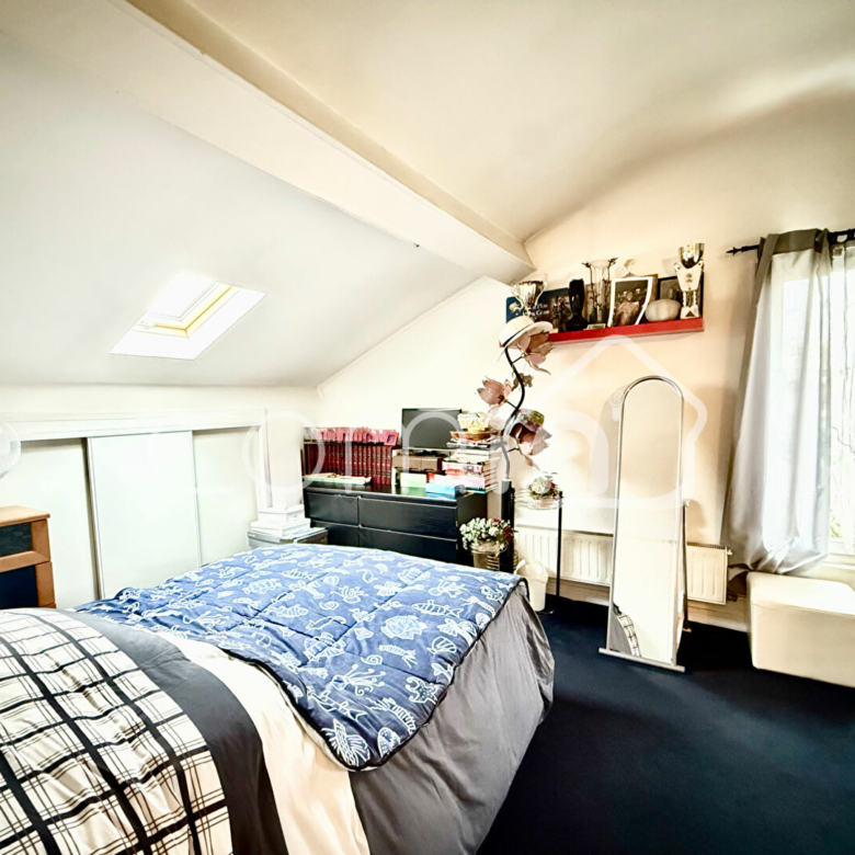 A l’étage, vous trouverez une chambre mansardée puis une seconde chambre de 7 m², idéale pour un bureau ou une chambre d’enfant, ainsi qu’une salle d’eau et un WC.