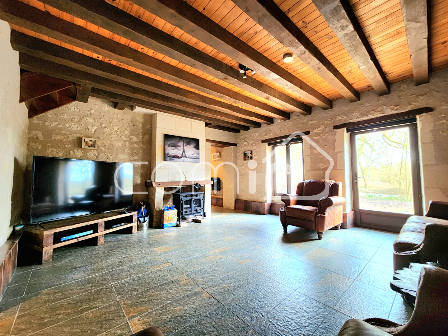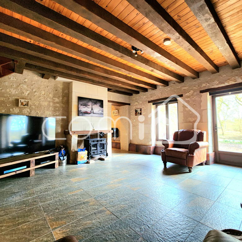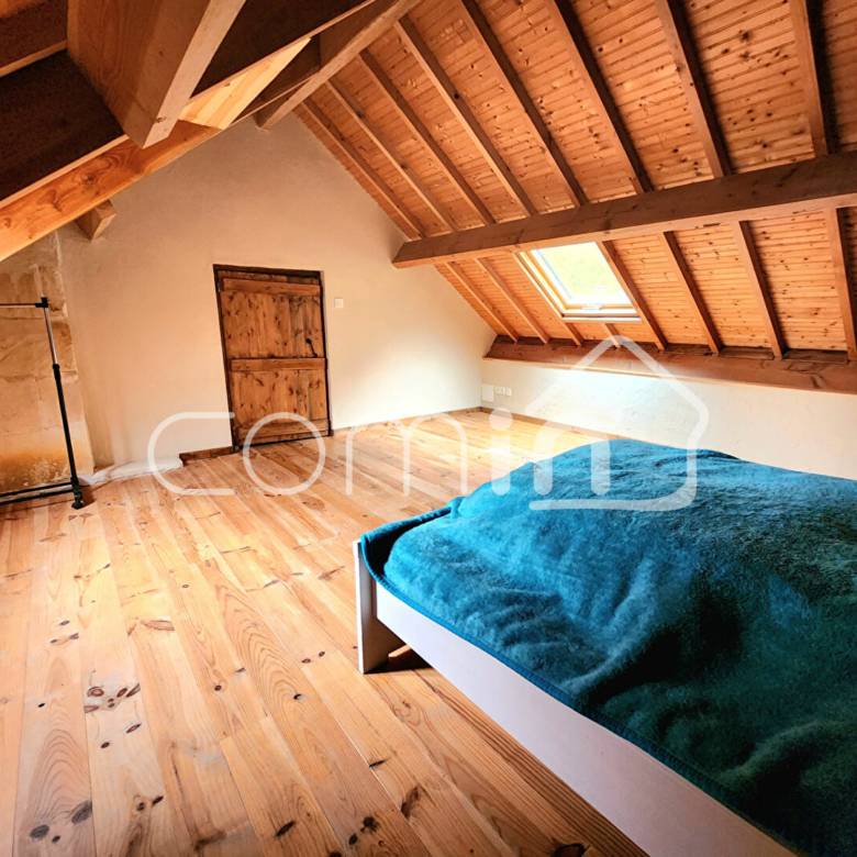 Une partie de la bâtisse avec un très fort potentiel (cheminée, volumes, luminosité) vous permettra d’imaginer la création de deux grands logements supplémentaires.