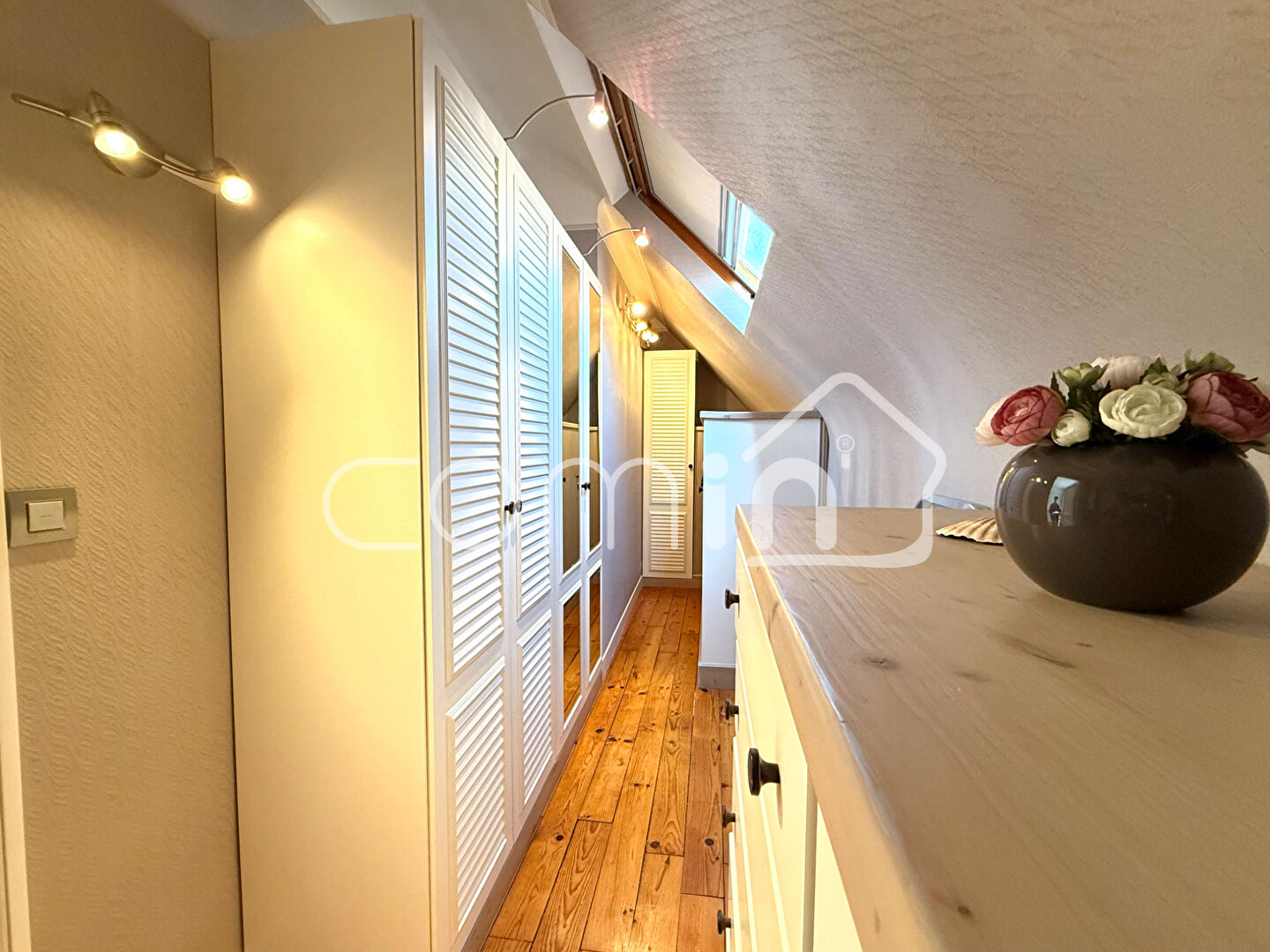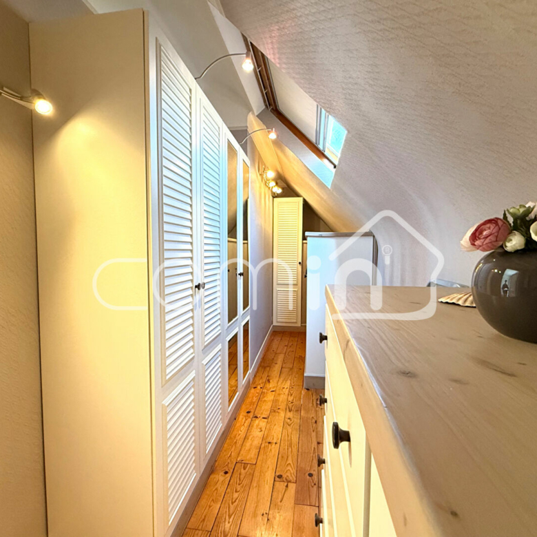 A l’étage, un palier avec une placard dessert l’espace nuit, composé de deux chambres, d’une salle de bain et d’un second dressing, offrant confort et praticité au quotidien.
