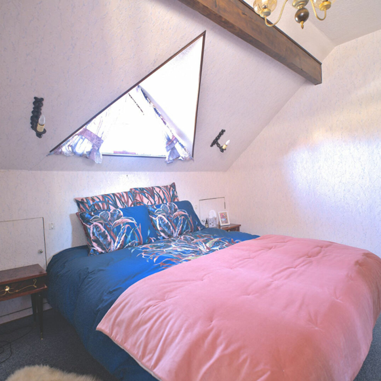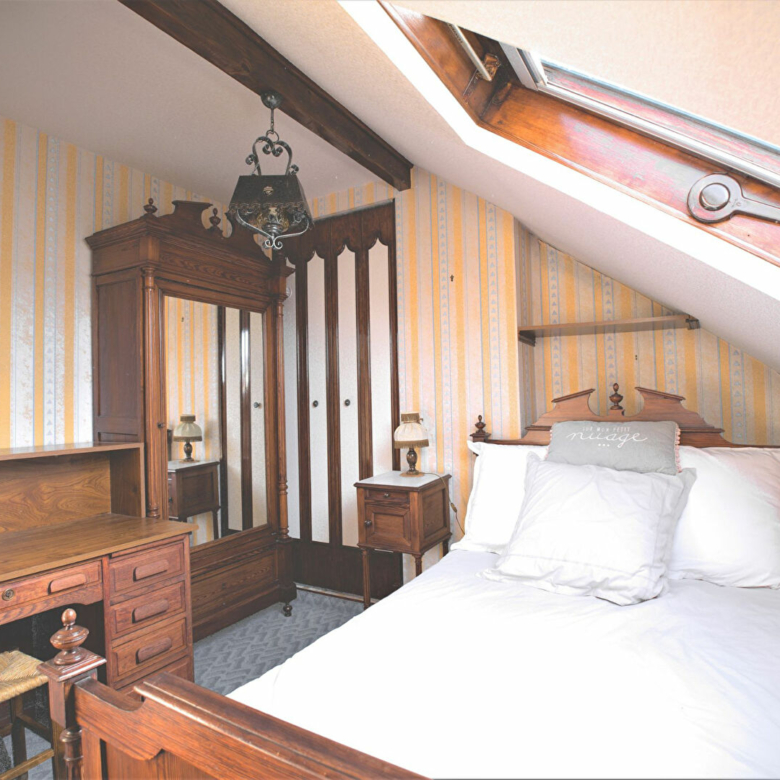 A l’étage, 3 belles chambres mansardées avec rangements, un bureau et une salle de bain comprenant un WC.