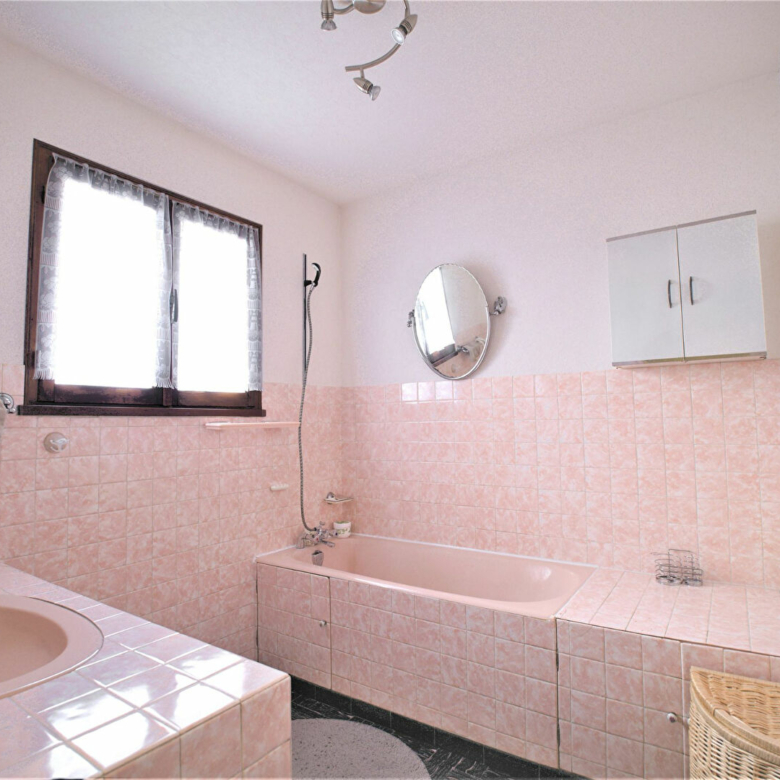Le sous-sol total avec entrée indépendante est composé d’un garage, d’un salon de 17m², d’une buanderie, et de 2 pièces supplémentaires dont une comprenant un WC.