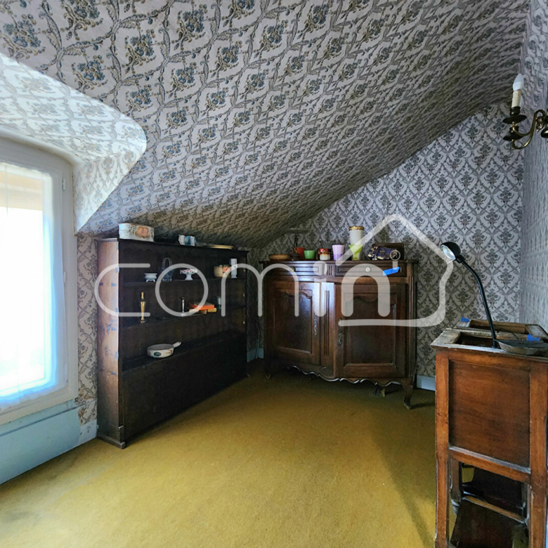 L’étage se compose d’une pièce palière (aménagée actuellement en bureau), de deux chambres (11 et 13m2), d’un dégagement et d’un grenier (pouvant constituer une troisième chambre) ainsi que d’une grande salle de bain avec WC.