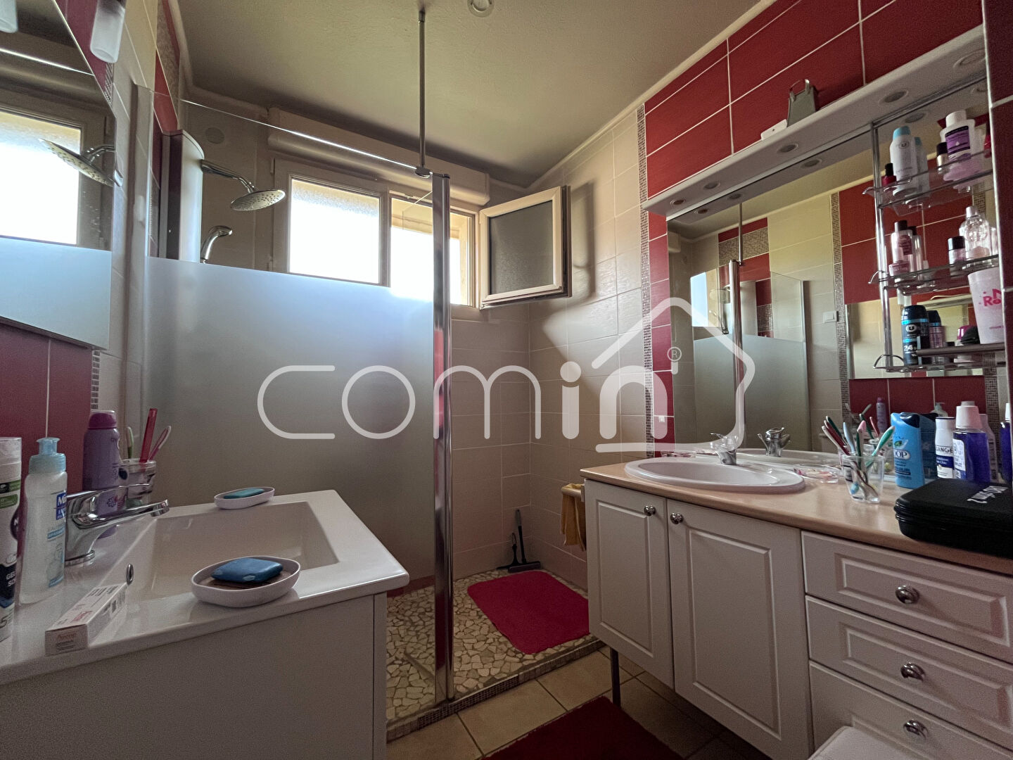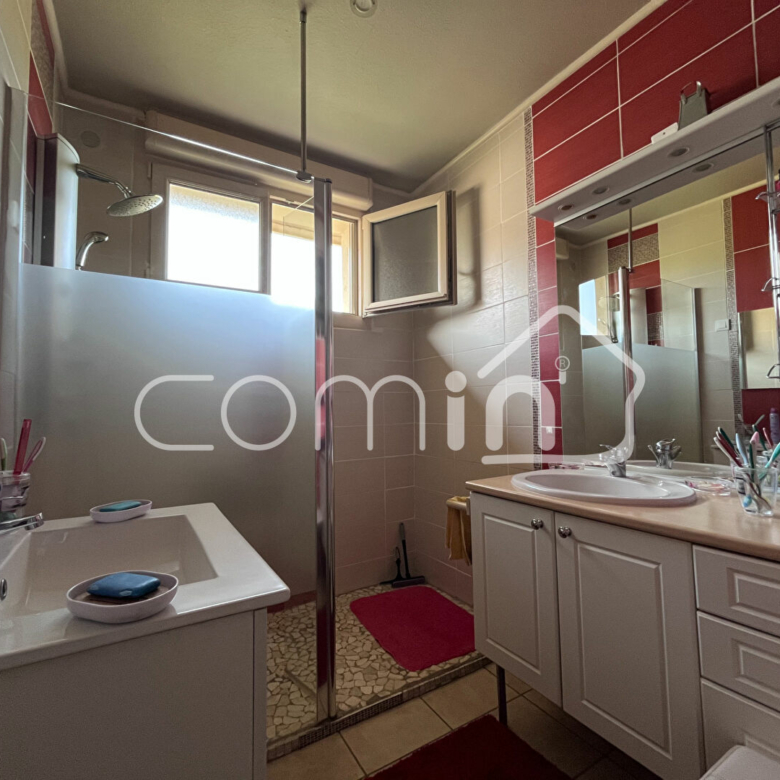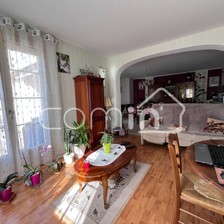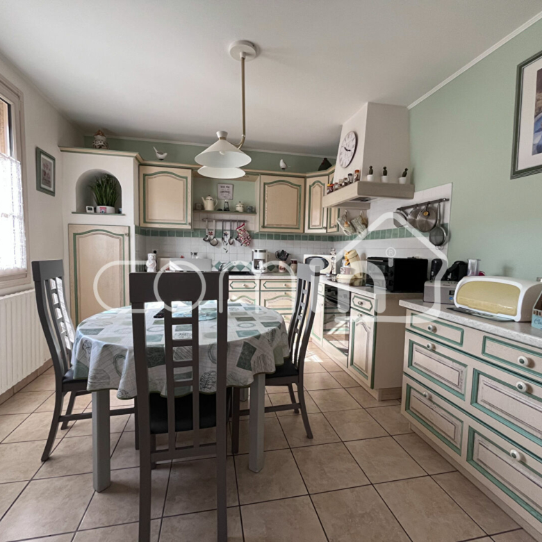 Composée d’une entrée avec placards, cuisine aménagée, double séjour de 39m² avec cheminée / insert et accès direct sur terrasse et jardin, salle d’eau, wc, 3 chambres avec placards.