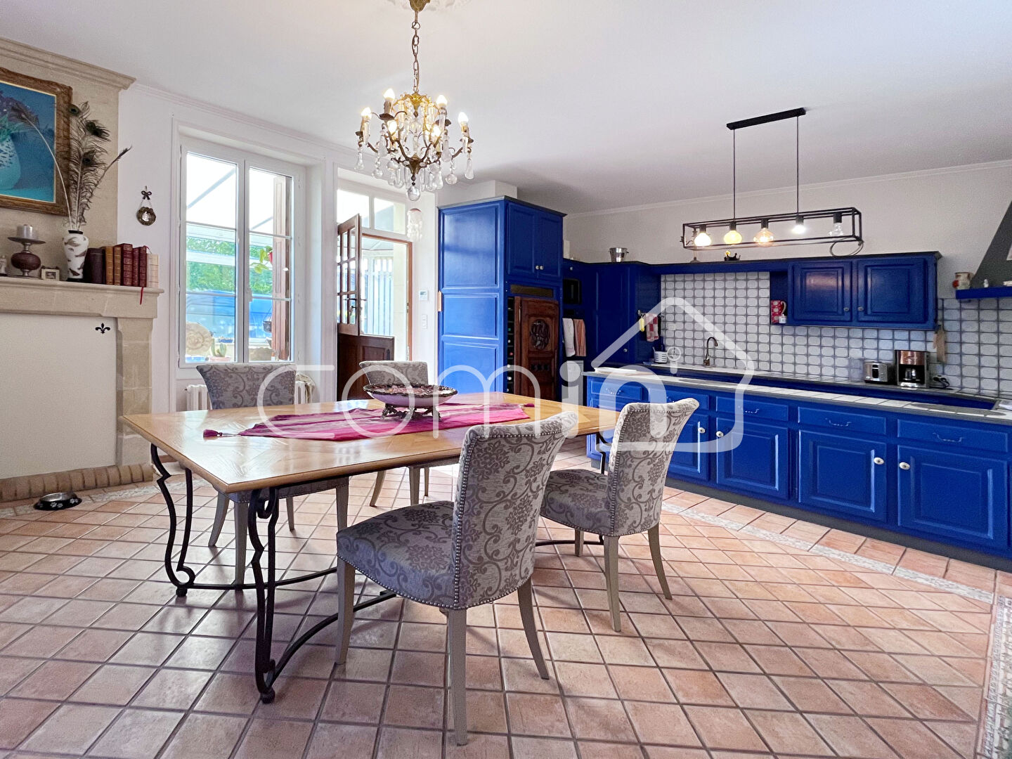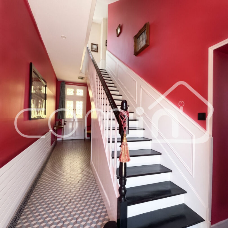 Espaces de réception : Dès l’entrée traversante, le ton est donné, de superbes carreaux de ciment d’origine et un escalier de maître soulignent l’élégance de la bâtisse. La pièce de vie principale de 33 m² accueille une spacieuse cuisine dînatoire, communiquant directement avec la véranda lumineuse de 23 m² et le jardin. Un salon chaleureux agrémenté d’une cheminée en tuffeau s’ouvre sur un bureau/bibliothèque offrant un espace fluide et fonctionnel. Une salle d’eau et un WC complètent ce niveau.