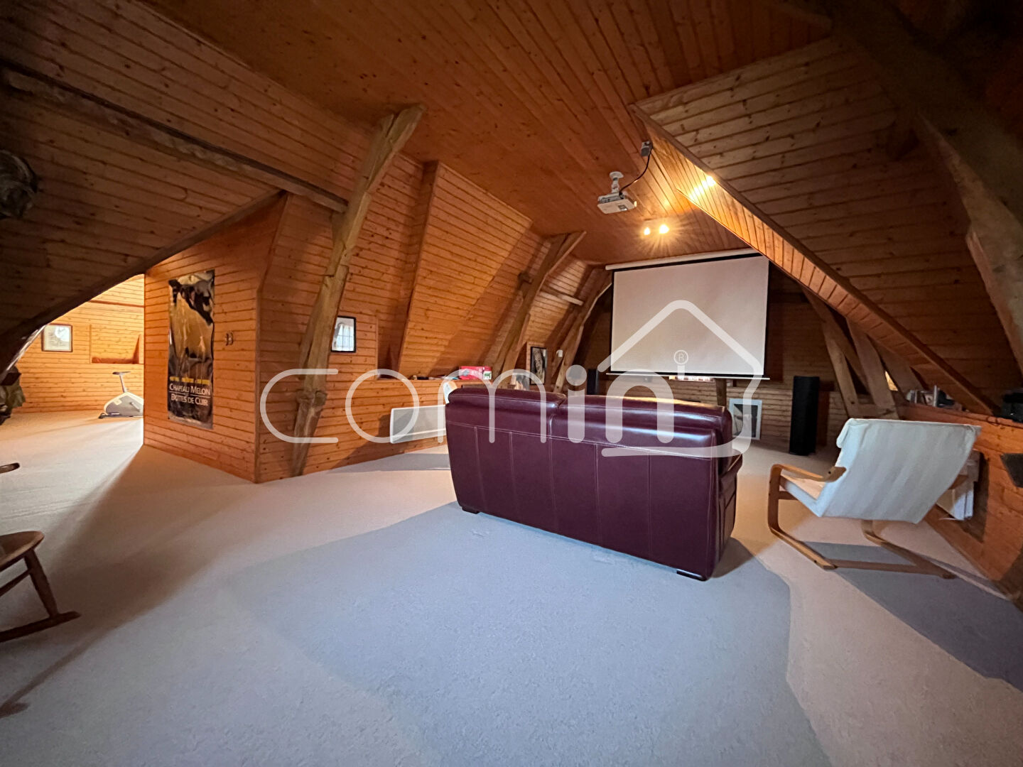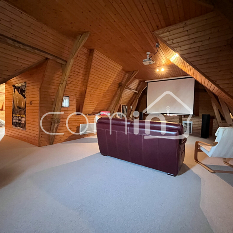 Au 2ème étage : Un plateau de plus de 80 m² au sol comprenant une chambre de 32 m² sous charpente apparente et une salle de cinéma privée de 44 m² dans une ambiance boisée et chaleureuse. Un luxe rare qui transforme cette demeure en un véritable lieu de divertissement et de repos.