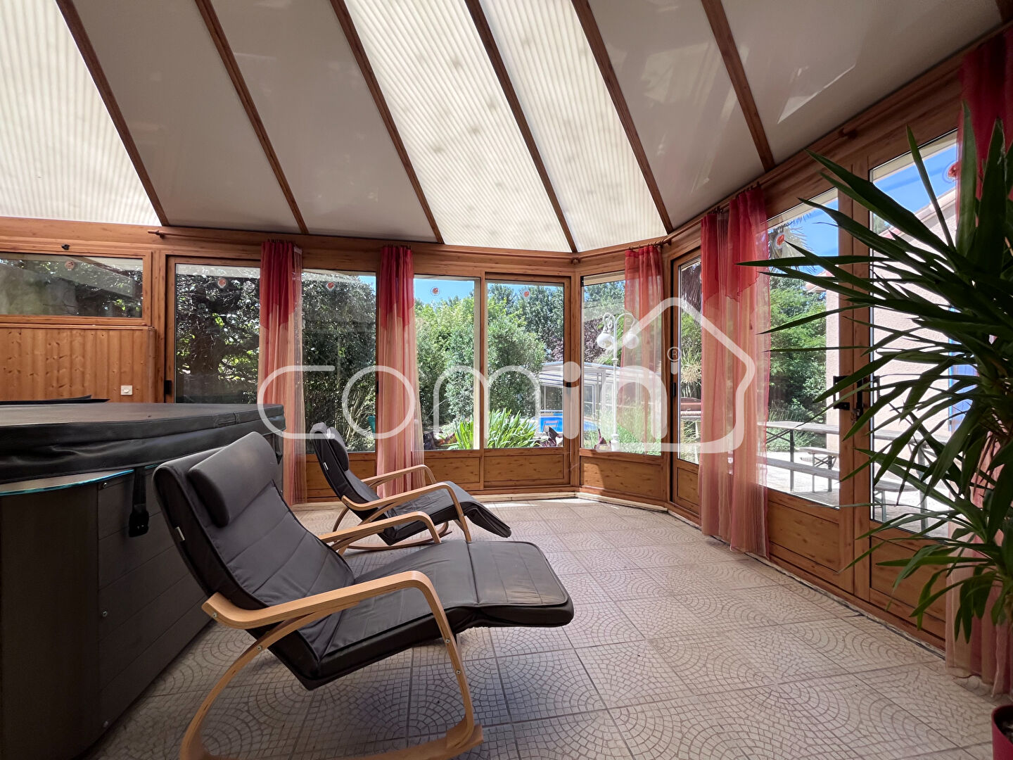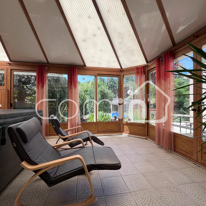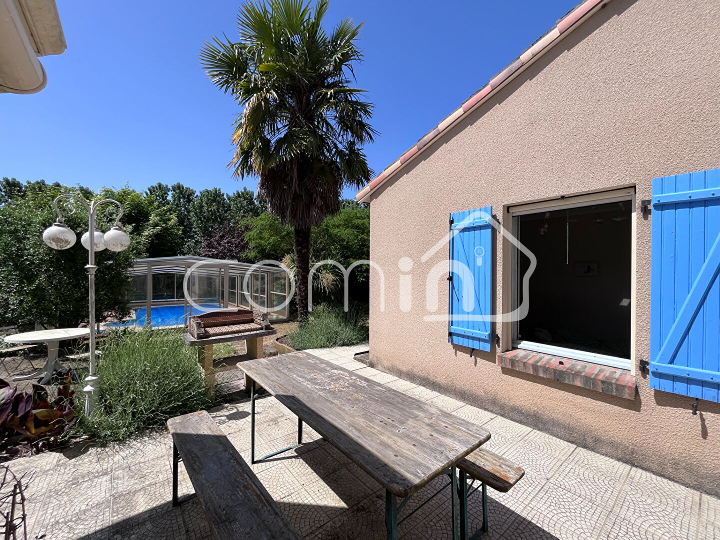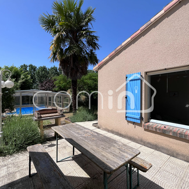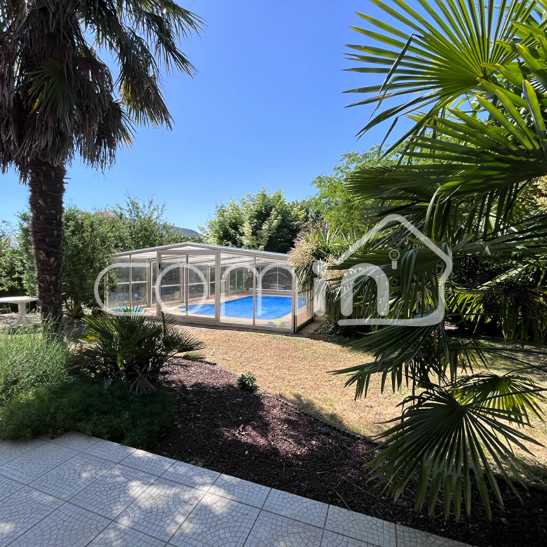 A l’extérieur vous profiterez d’une piscine couverte de 7mx4m, d’un abri voiture et d’un garage, d’une dépendance attenante aménageable de 40m2, d’un jardin arboré avec une vue dégagée imprenable.