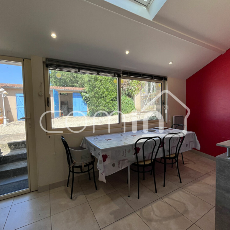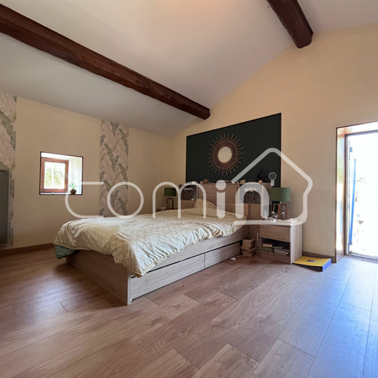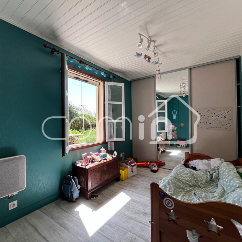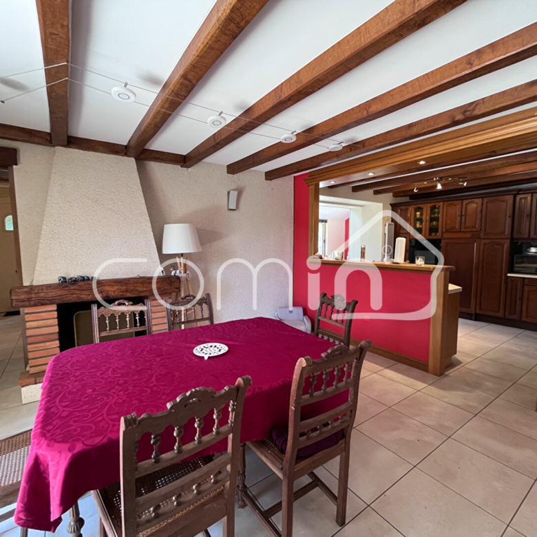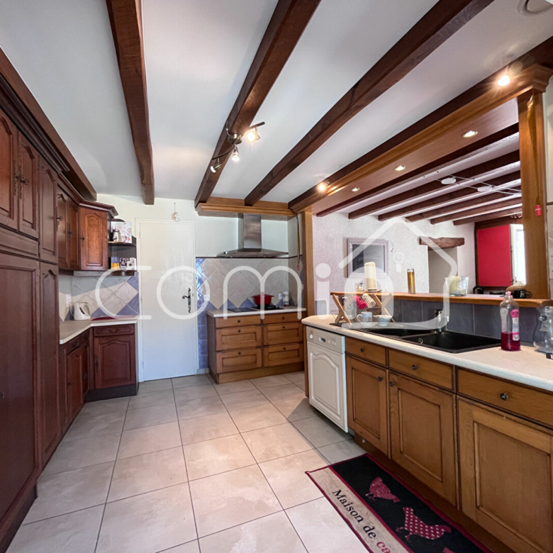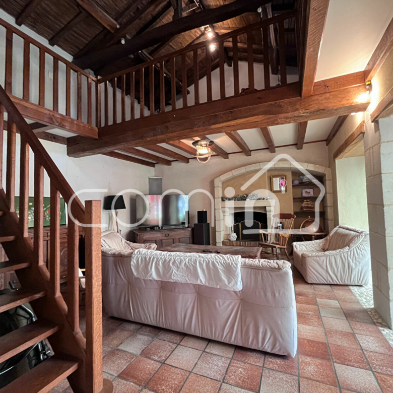 La maison se compose d’une entrée avec placards, d’un salon avec cheminée et mezzanine donnant sur véranda avec SPA et accès direct sur terrasse et jardin, d’une cuisine aménagée ouverte sur la salle à manger avec cheminée, 3 chambres, une salle bains avec wc, une salle d’eau, un wc.