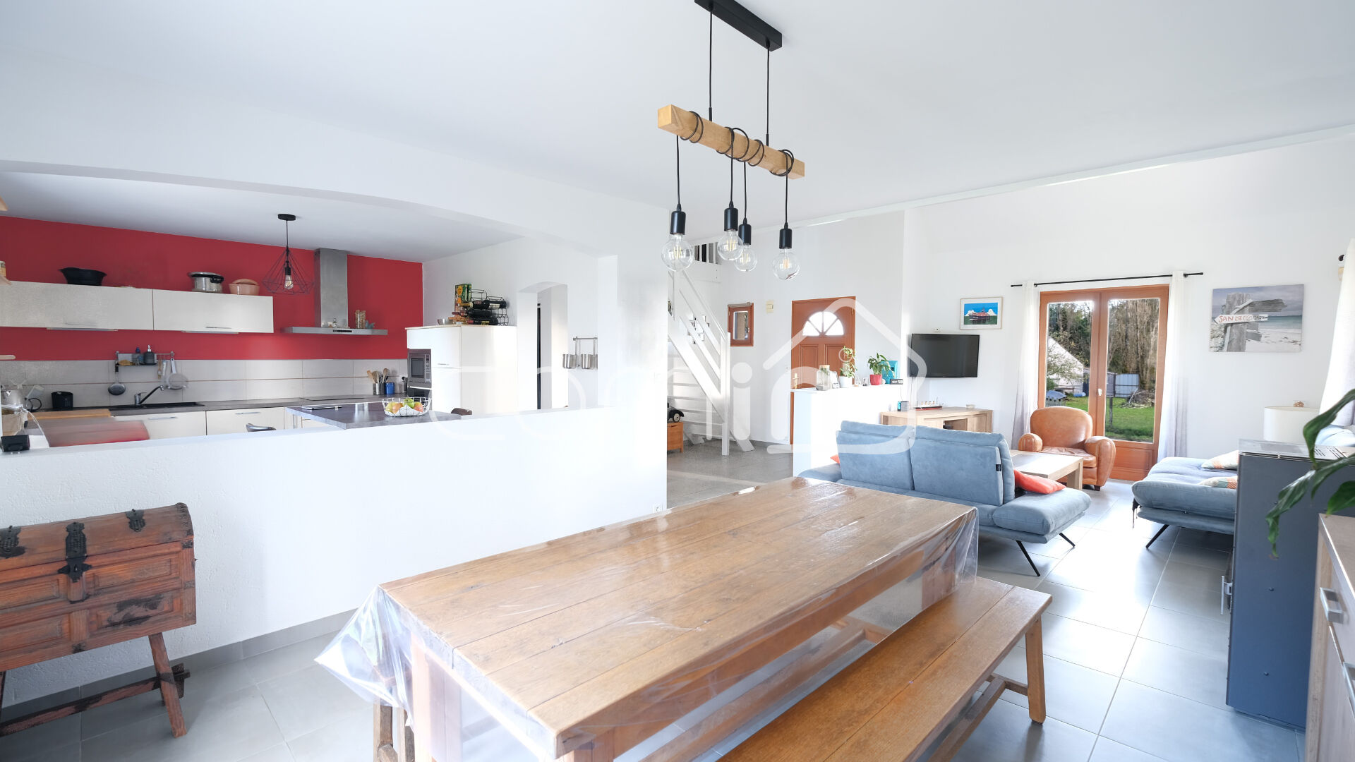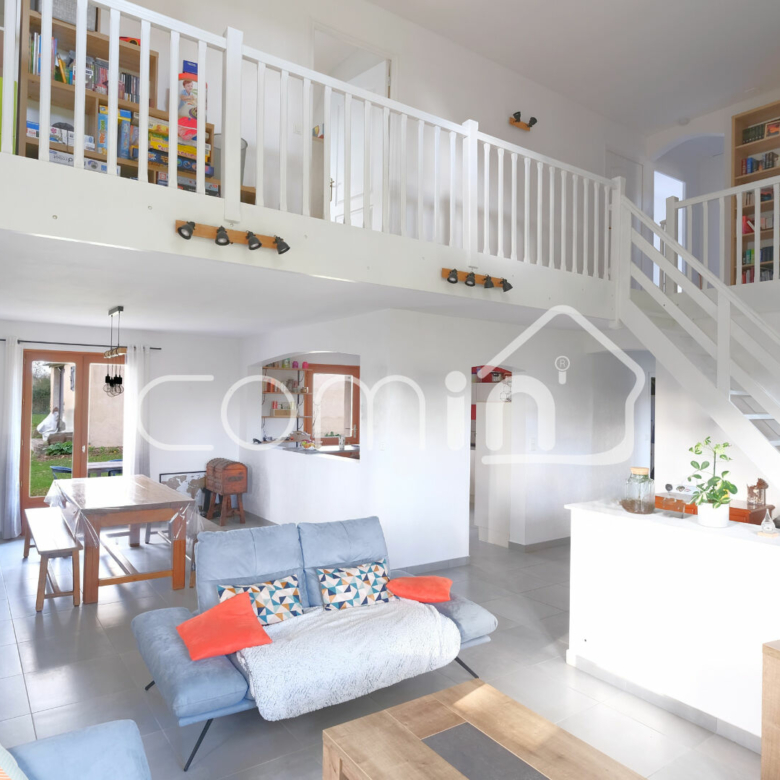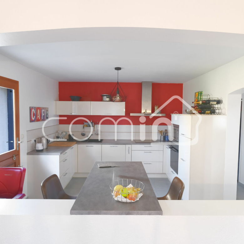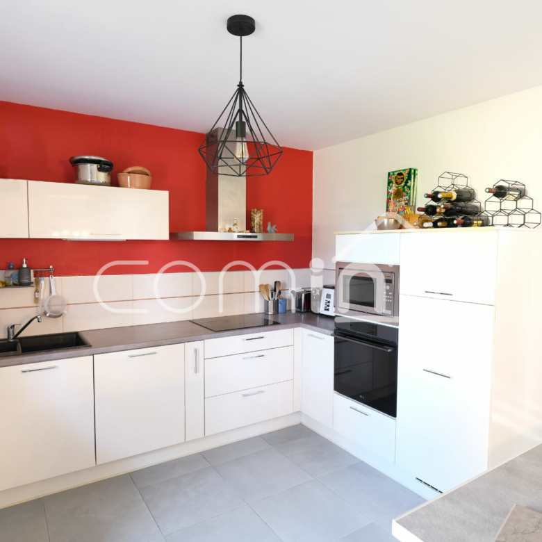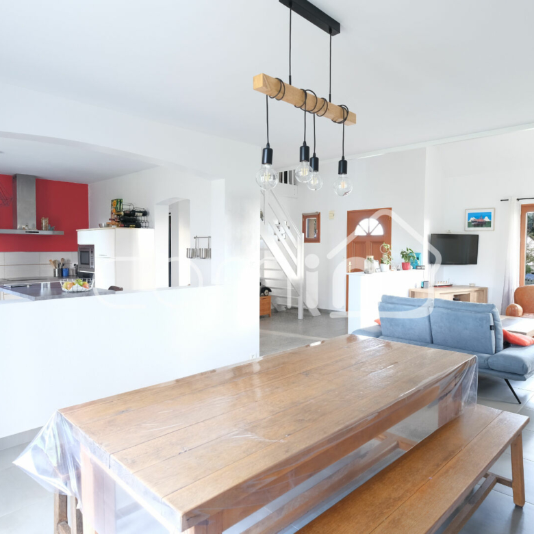 Cette maison des années 2000 à la vie de plain-pied est composée d’une entrée cathédrale, une grande pièce de vie lumineuse et traversante de 45m² exposée SUD EST avec poêle à pellet HOBEN et ouverte sur une terrasse de 40m², une grande cuisine aménagée et équipée avec accès terrasse, une salle d’eau et WC, une chambre de plain-pied avec rangements, une grande buanderie.