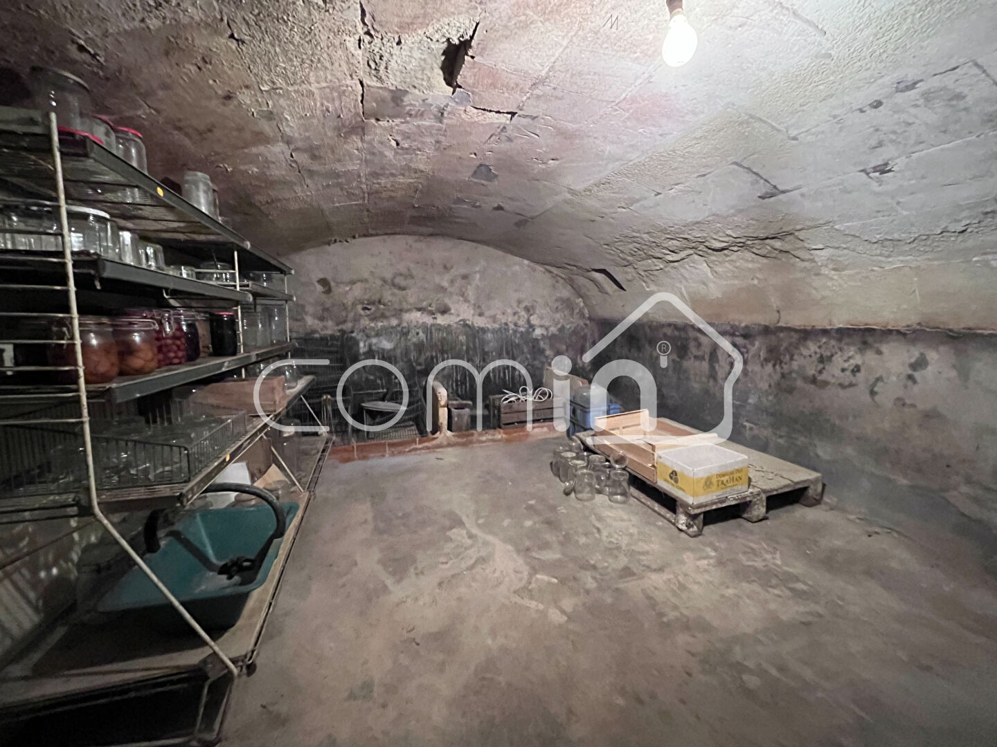 La maison est reliée au tout à l’égout et dispose d’une cave voutée.