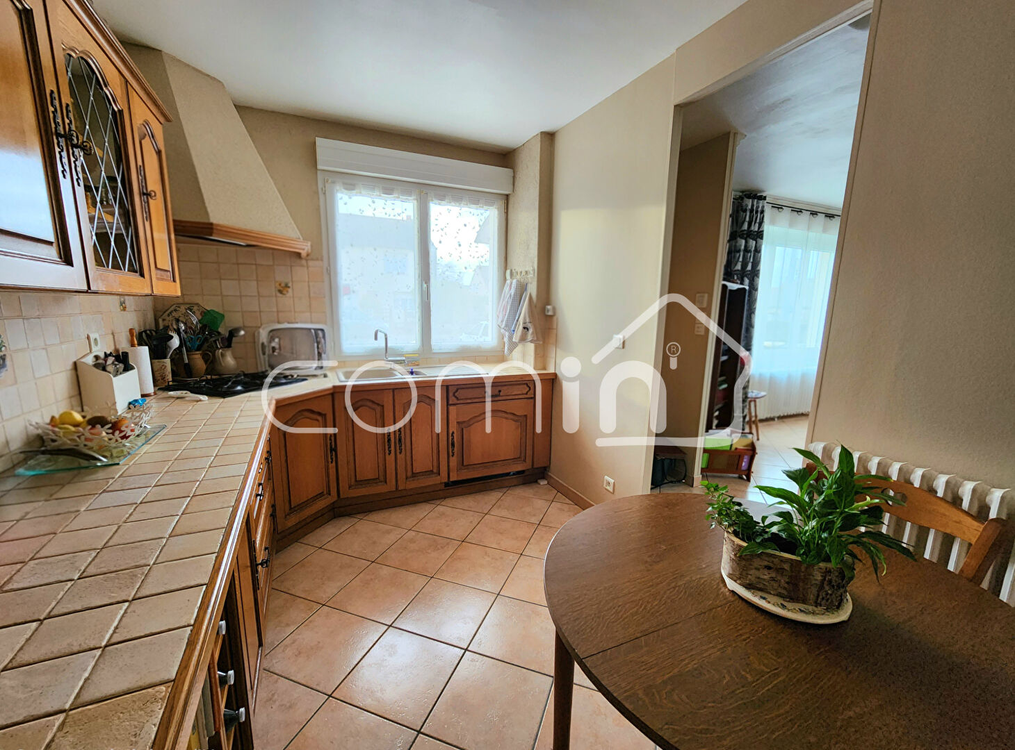 Une cuisine indépendante de 10 m2 propose un espace fonctionnel.