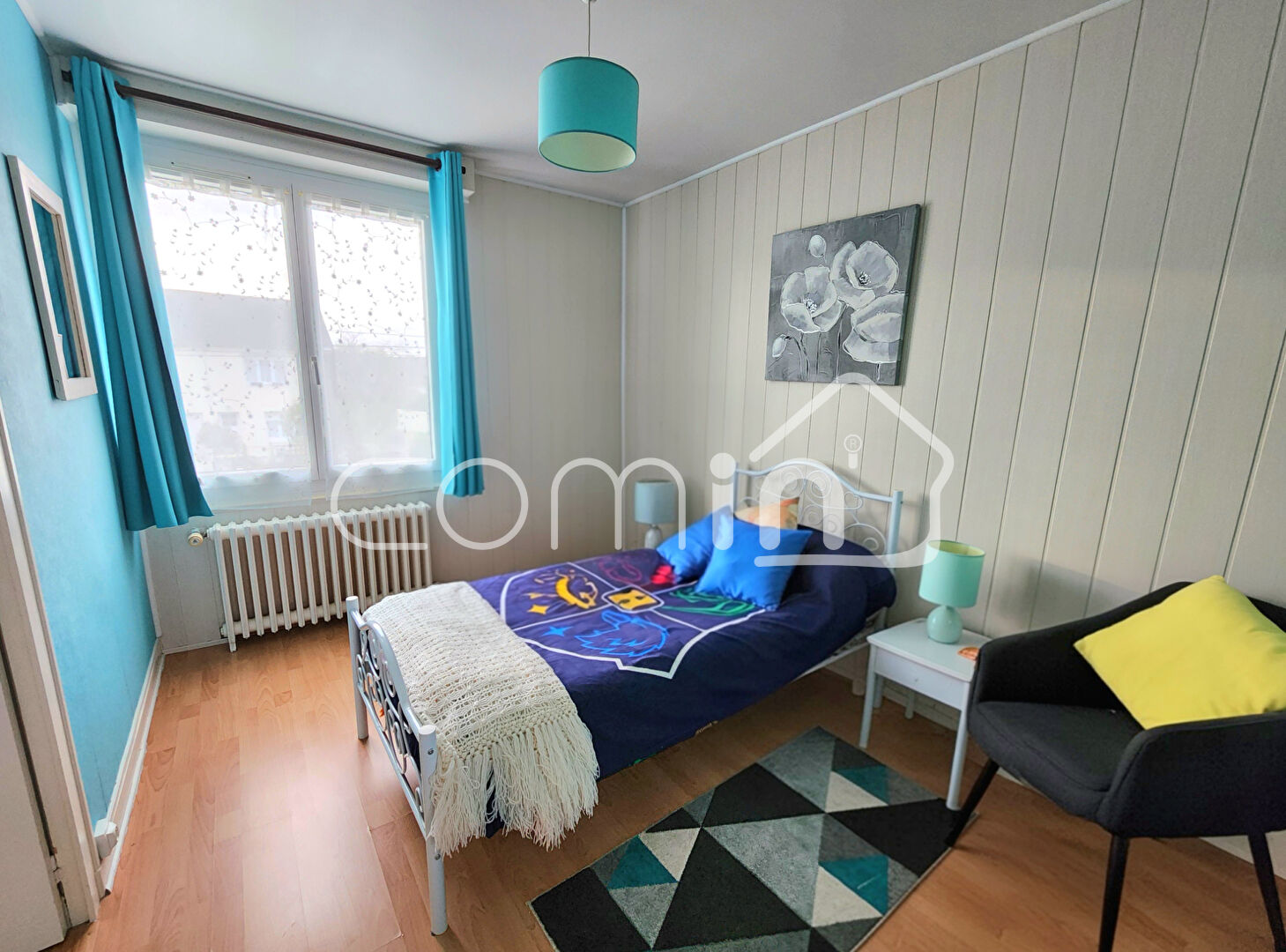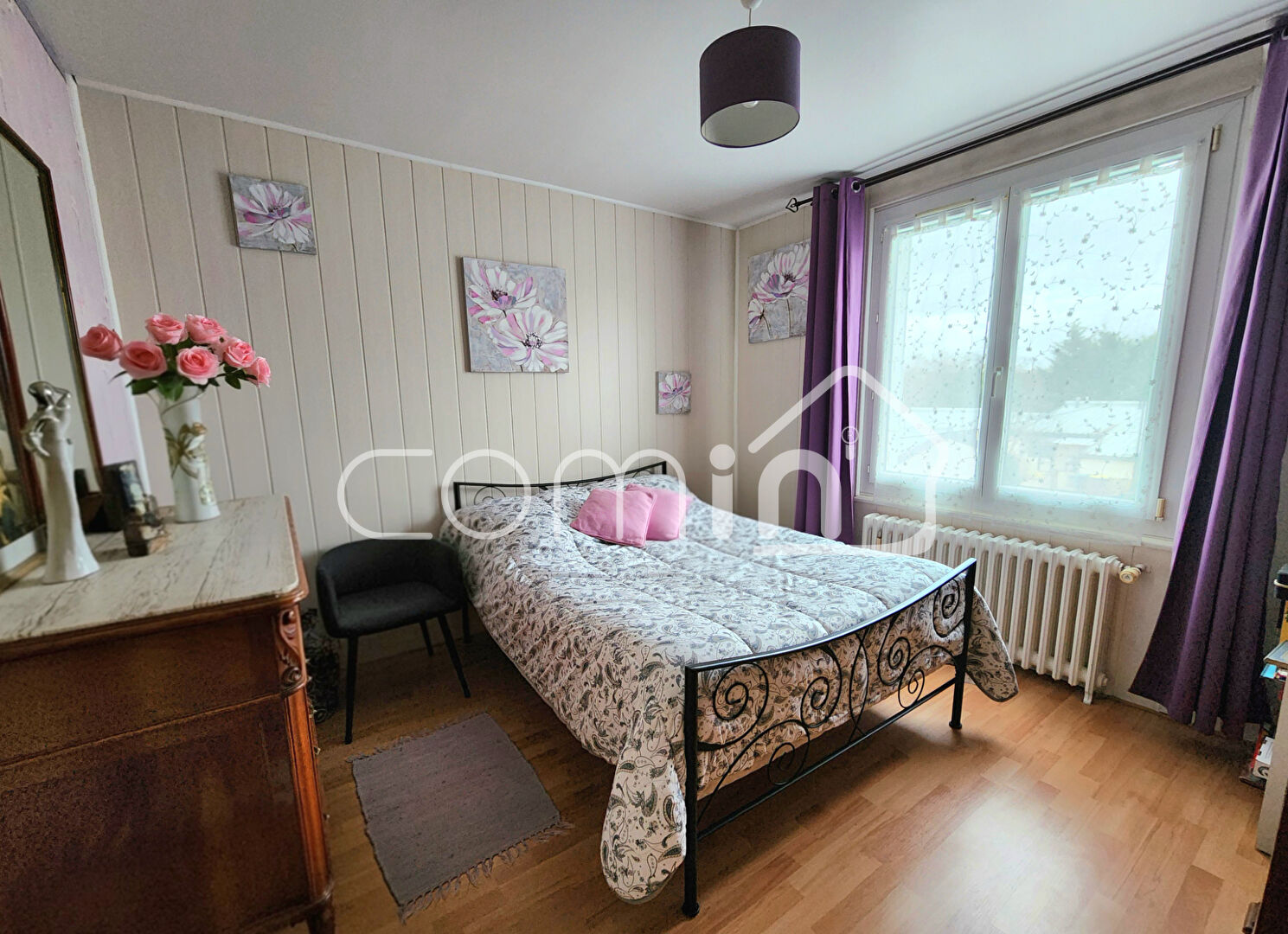 A l’étage, le palier dessert trois chambres lumineuses de 14, 12 et 9m2.