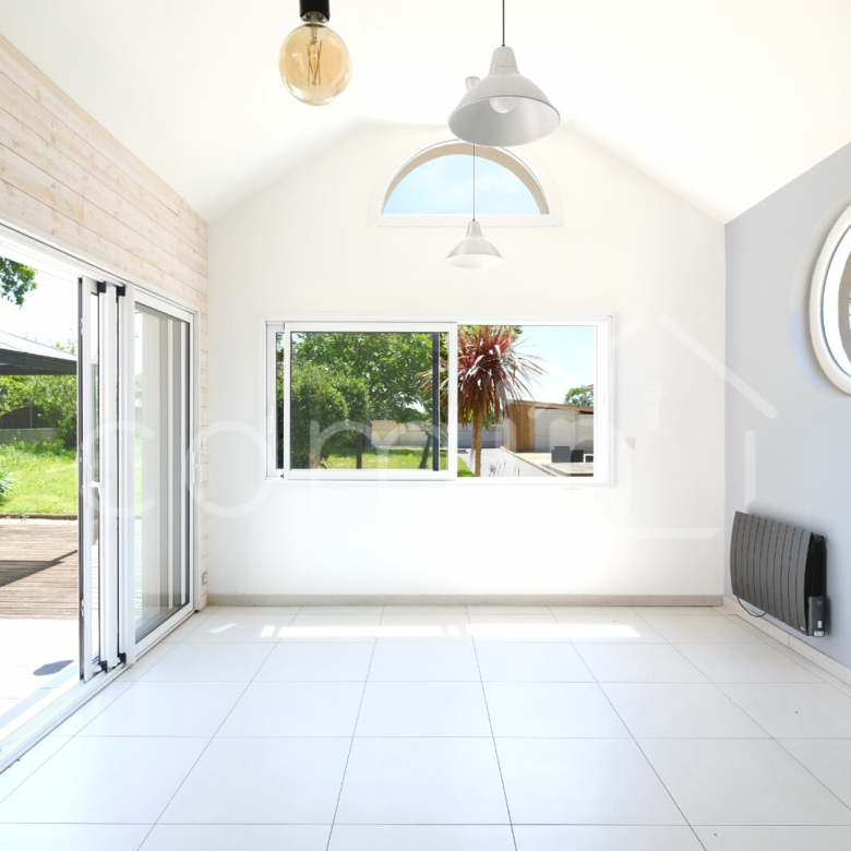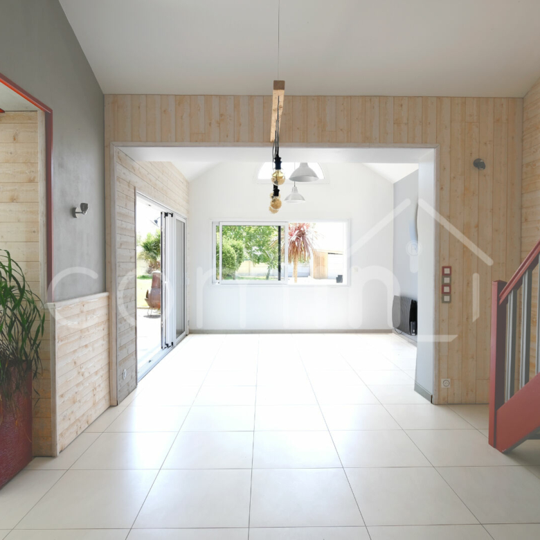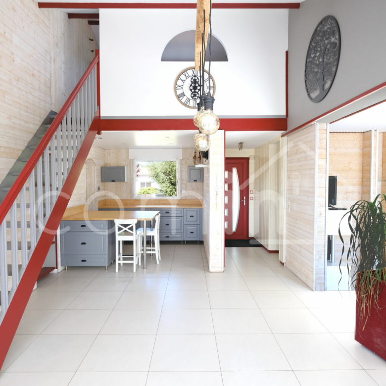 Dans un coin calme et entouré de verdure, cette maison RENOVÉE de 1995 vous séduira par sa taille atypique (150m² habitables) , ses grandes hauteurs sous plafond et son jardin paysagé.