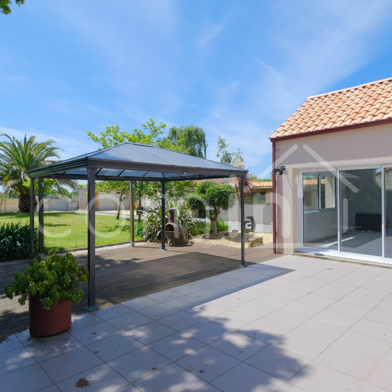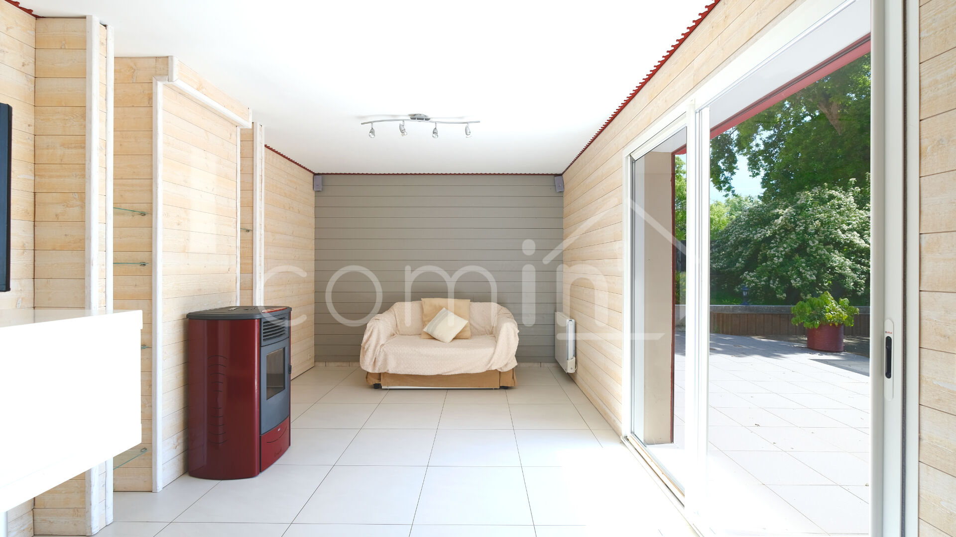 Cette maison de charme et de plain-pied est composée d’une entrée, une grande pièce de vie lumineuse et traversante de 56m² exposée SUD OUEST, avec coin repas, salle à manger, salon et son poêle à pellet, ouverte sur une grande terrasse de 65m².
