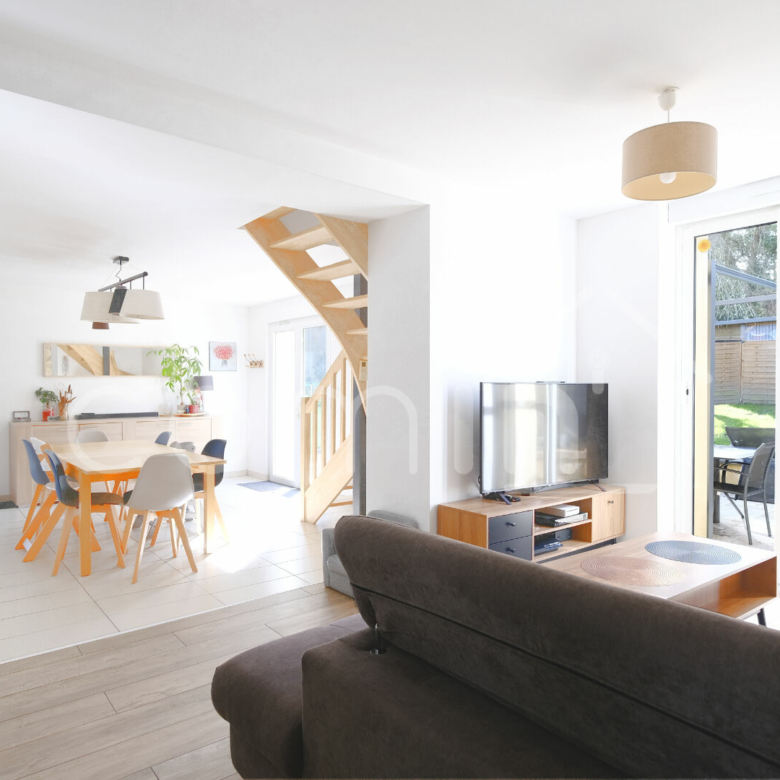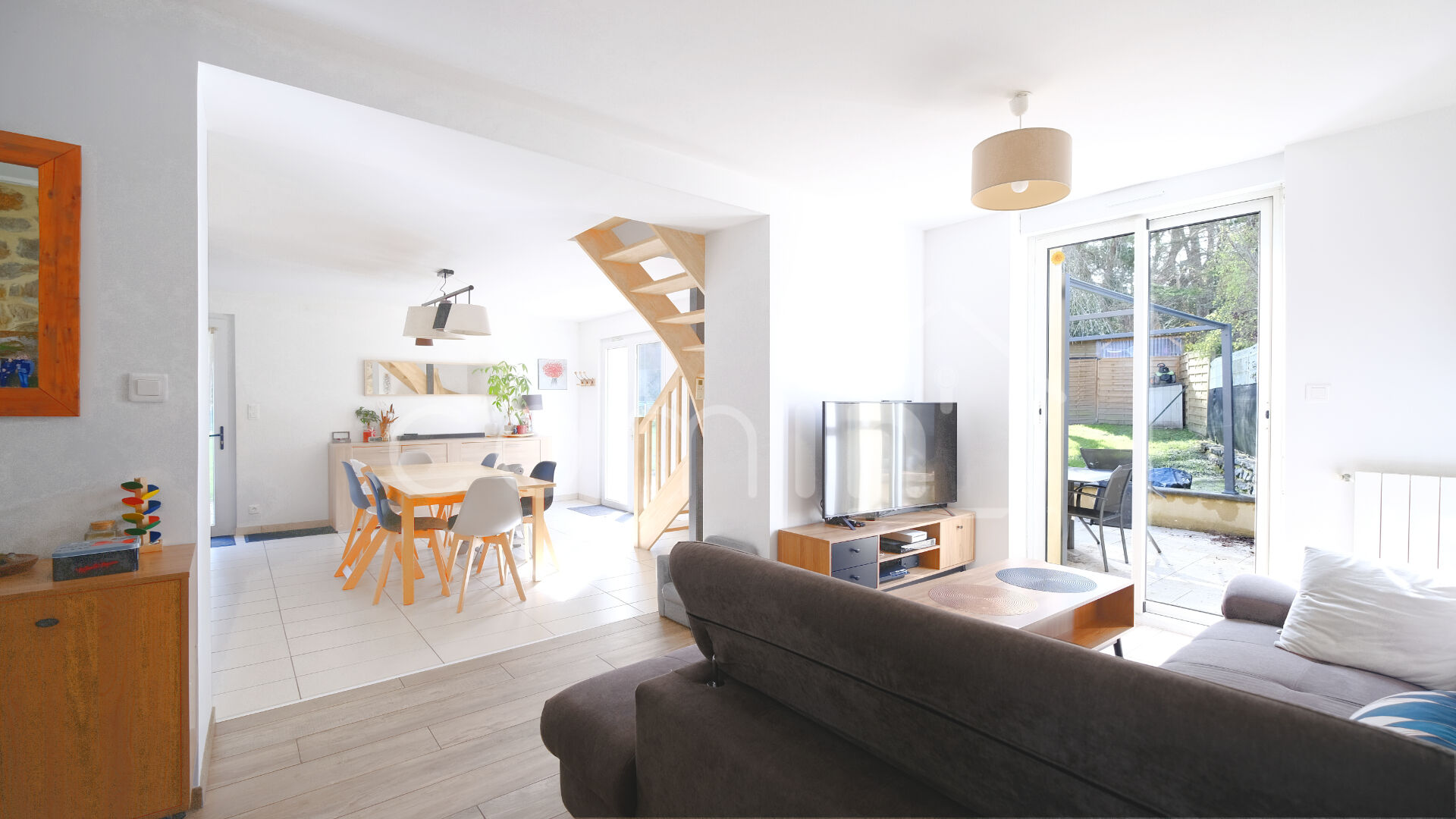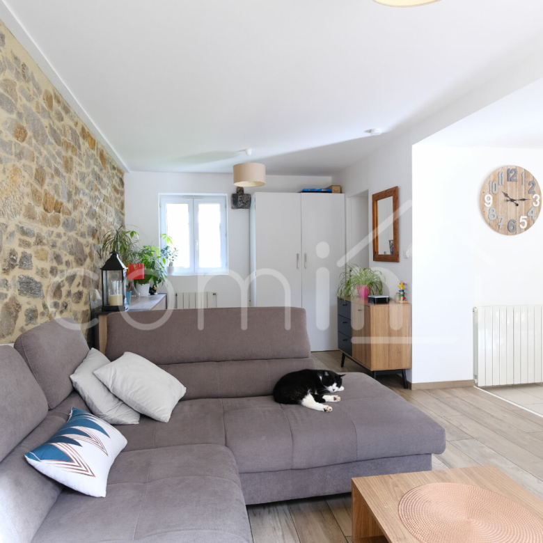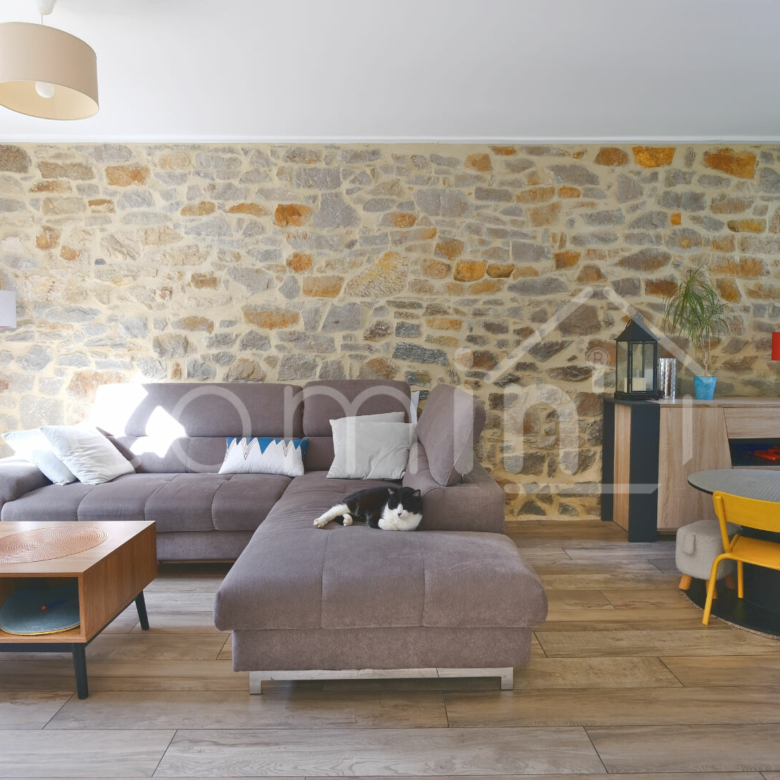 Dans un coin calme et entouré de verdure, cette maison mitoyenne ENTIÈREMENT RENOVÉE de 75m² habitables vous séduira par l’union du bois et de la Pierre.