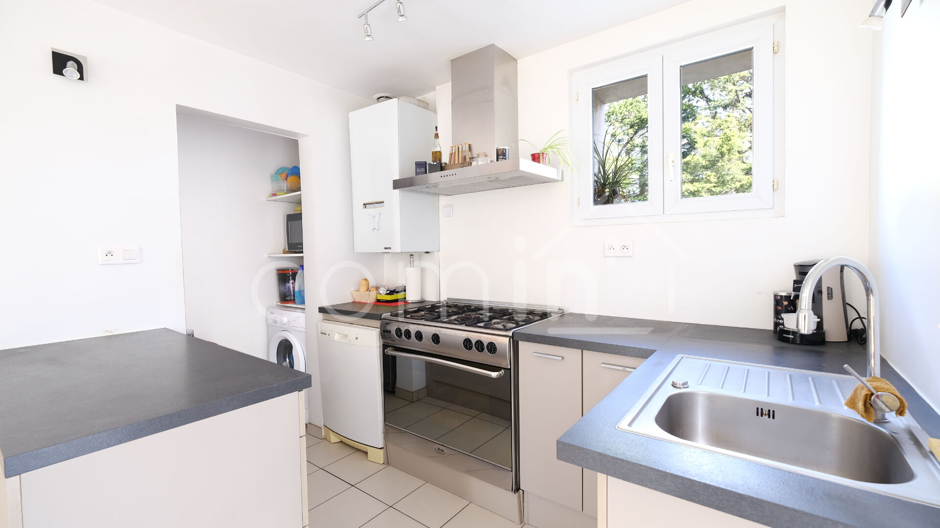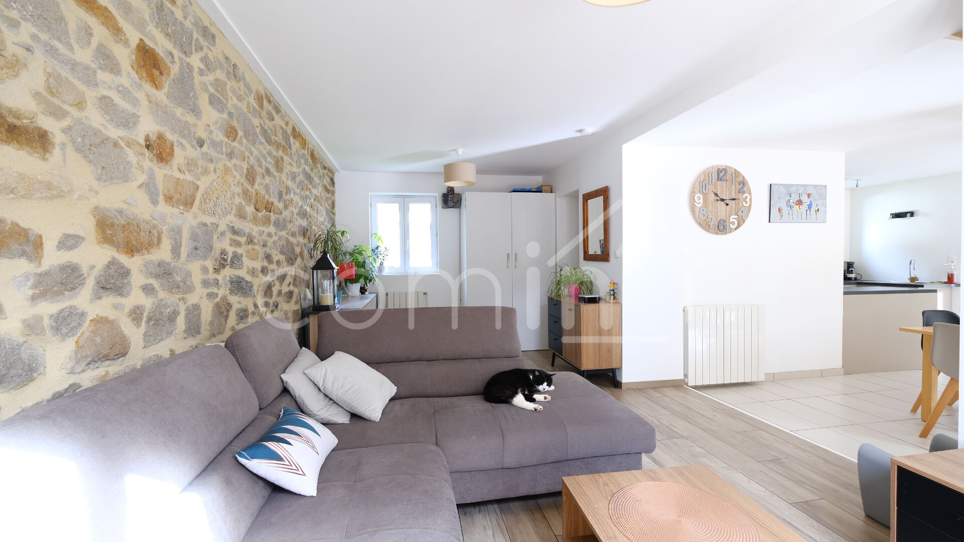 Cette maison de charme est composée d’un lumineux séjour de 28m² exposé SUD EST ouvert sur une grande terrasse carrelée et sa pergola, une cuisine aménagée et équipée (Piano de cuisson, lave-vaisselle) ainsi que son arrière cuisine.