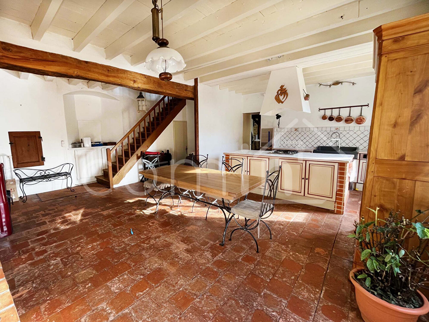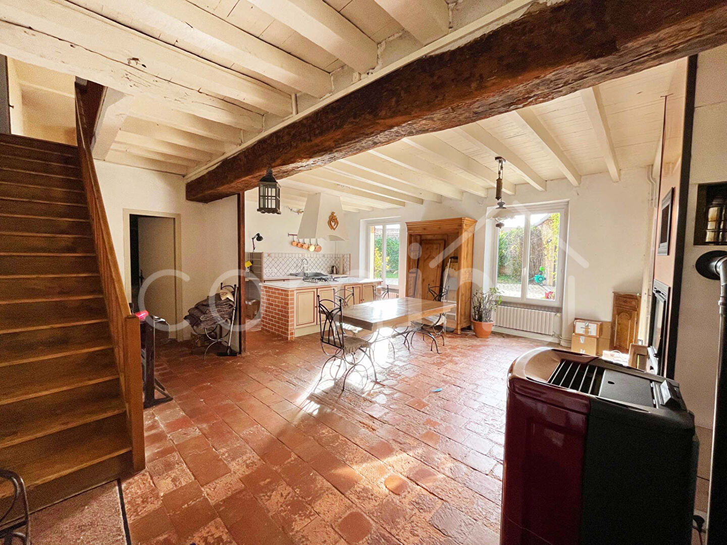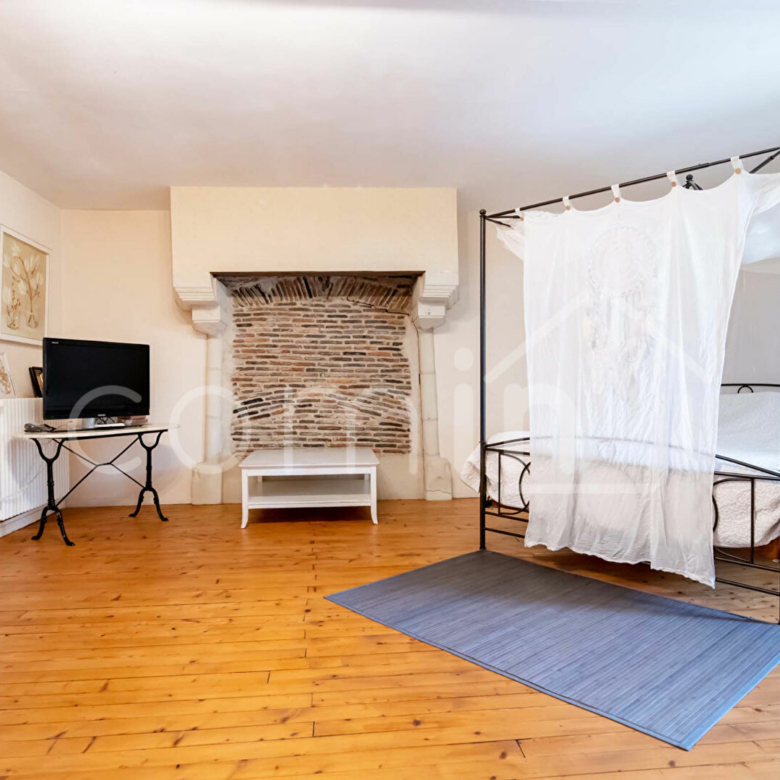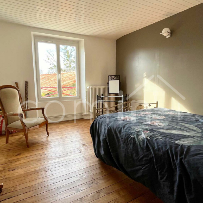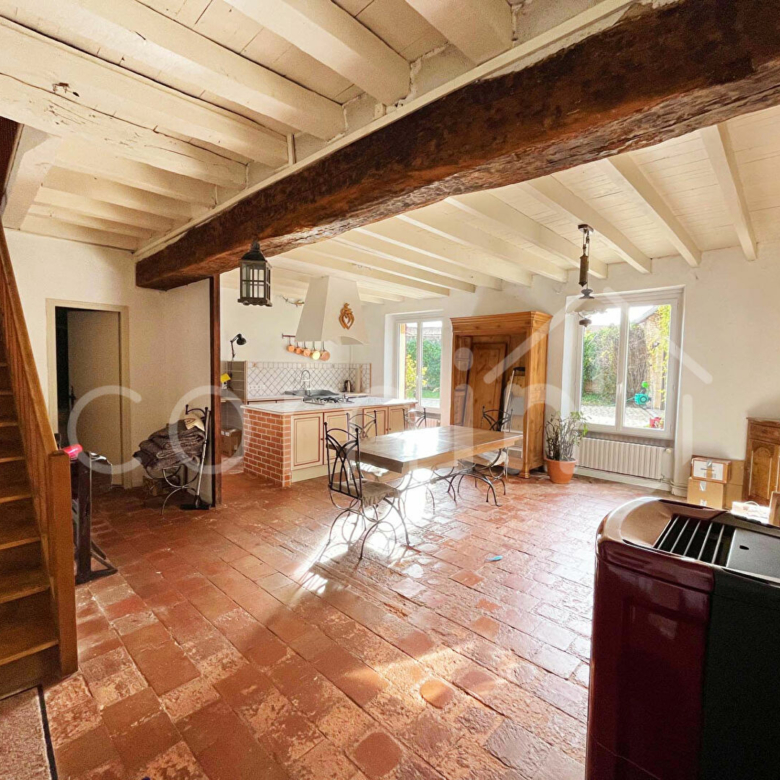 La maison se compose d’une entrée avec placards, un salon avec cheminée, une salle à manger avec cuisine aménagée et équipée et insert, un palier avec coin bureau, 3 chambres dont une d’environ 40m², 2 salle d’eau, 2 wc.