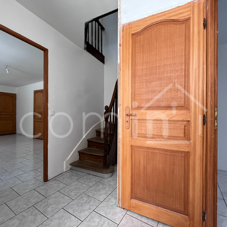 Le rez-de-chaussée comprend une entrée avec rangement, cuisine, séjour, wc, une pièce à aménager (salle d’eau…) et un Garage de 30m².