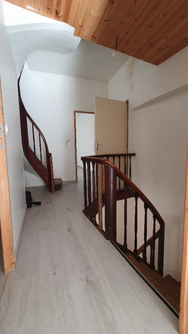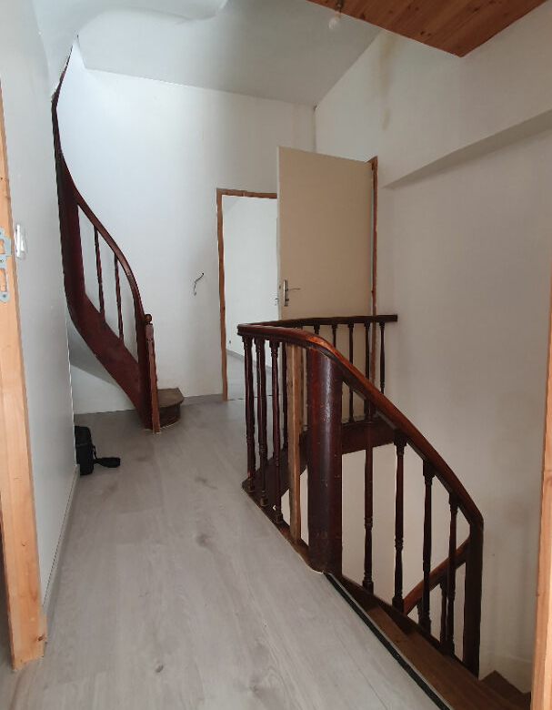 A l’étage le palier dessert 3 chambres dont une de 30m², une grande salle de bains avec baignoire / douche / wc, un emplacement pour toilettes.