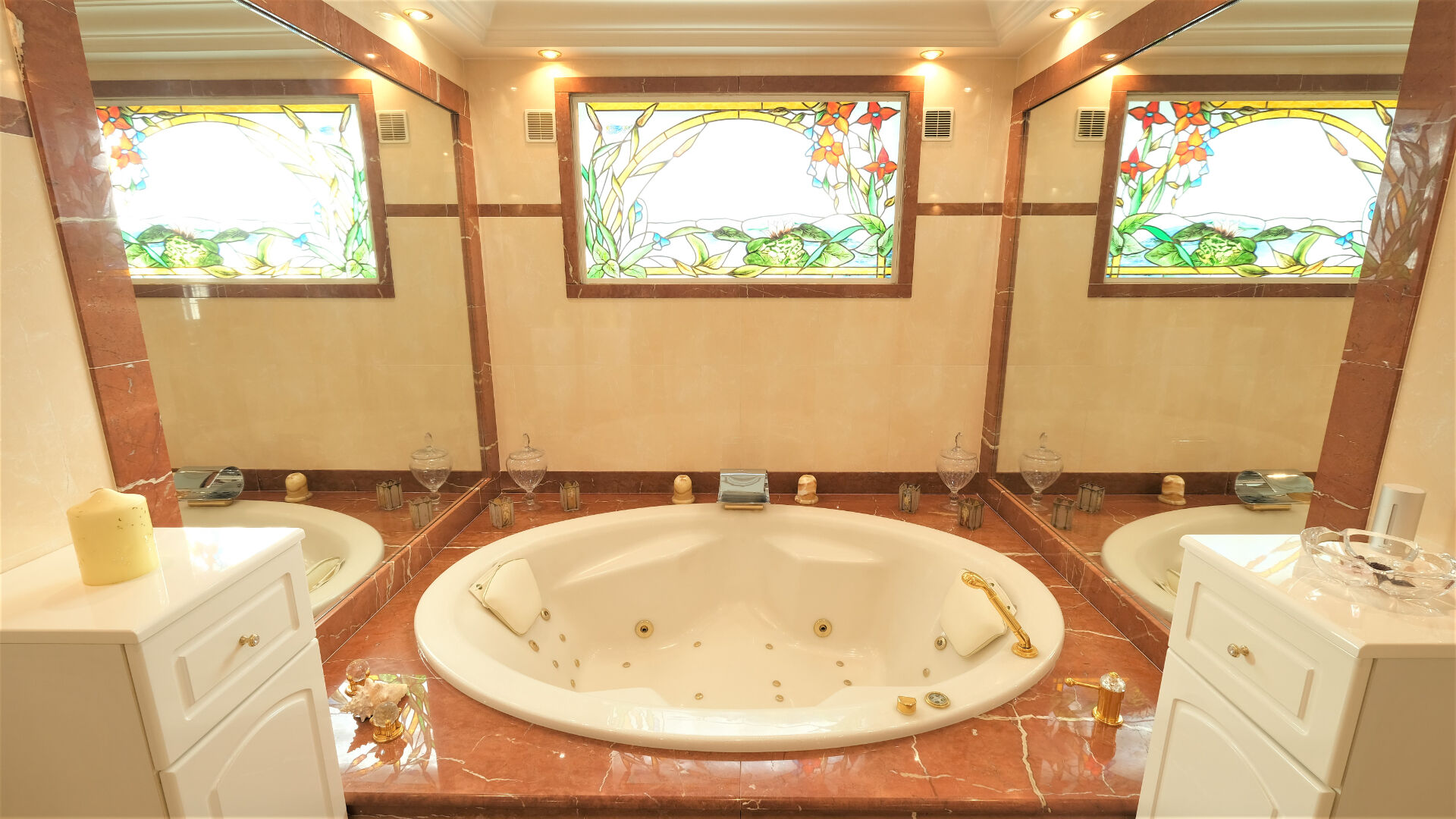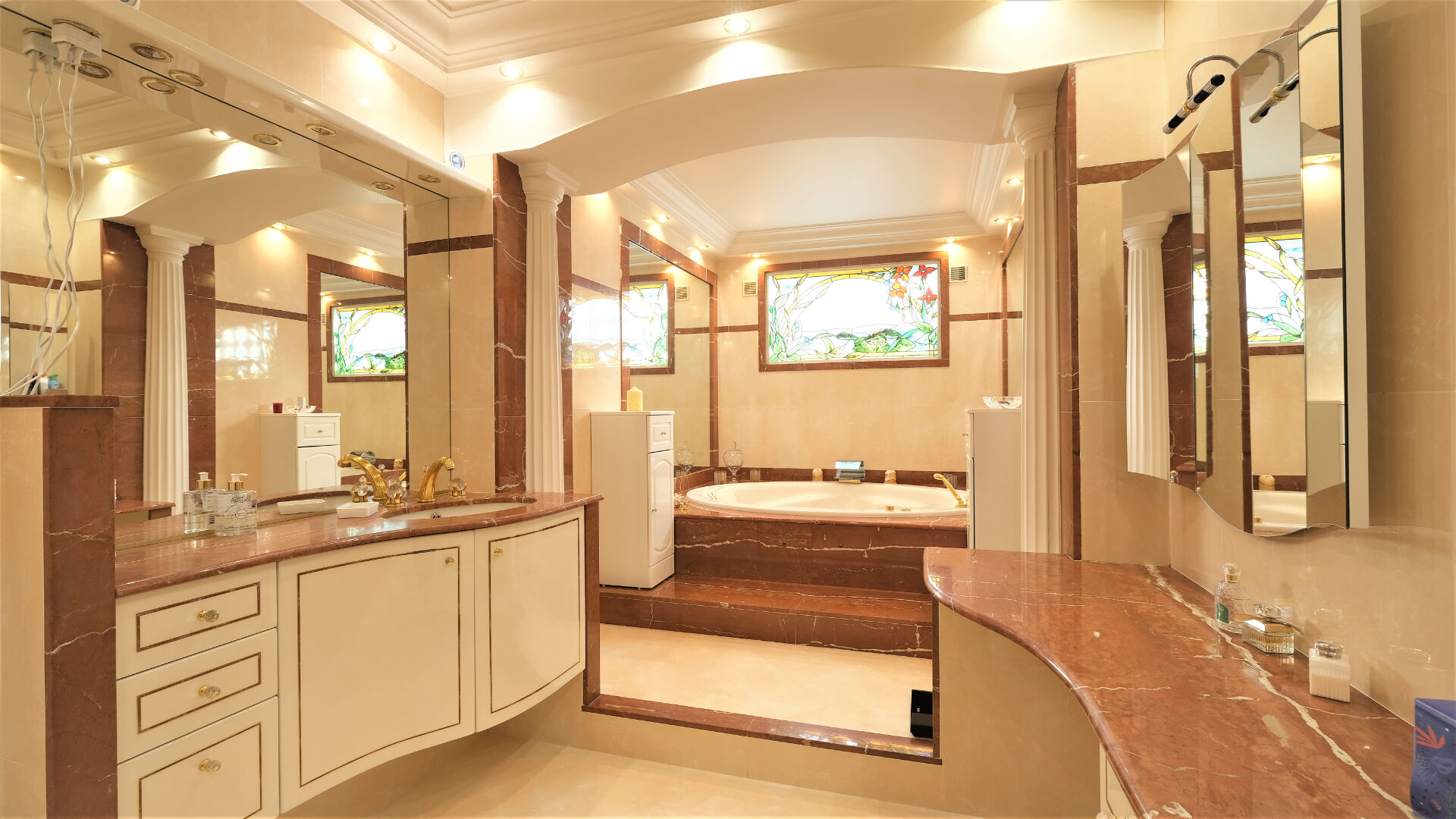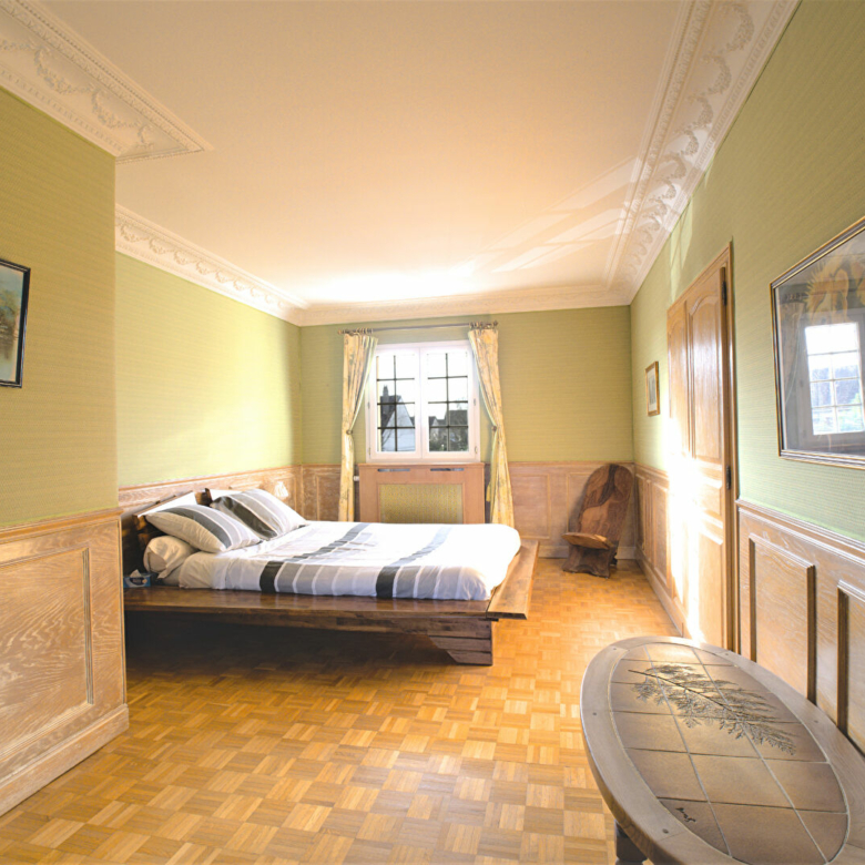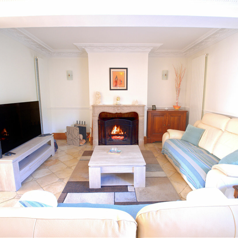 Ce pavillon est composé d’une entrée spacieuse avec vitraux, une cuisine équipée récente, une salle de bain en marbre avec WC suspendu, baignoire balnéo et douche, une chambre de 13m² et son dressing séparé, un séjour traversant en pierre de 43m², une cheminée et un accès au jardin.