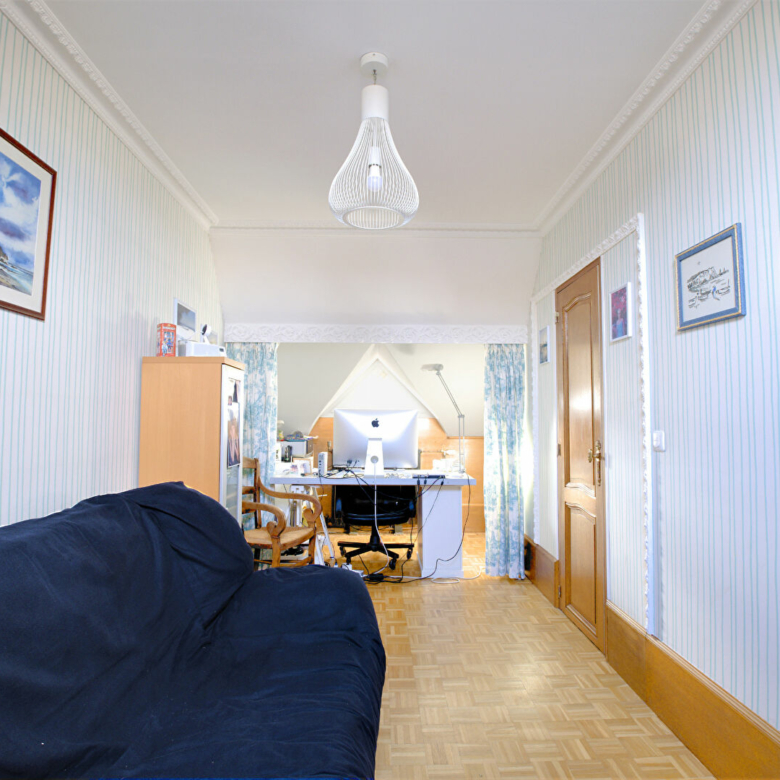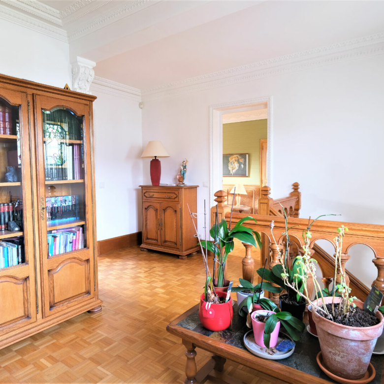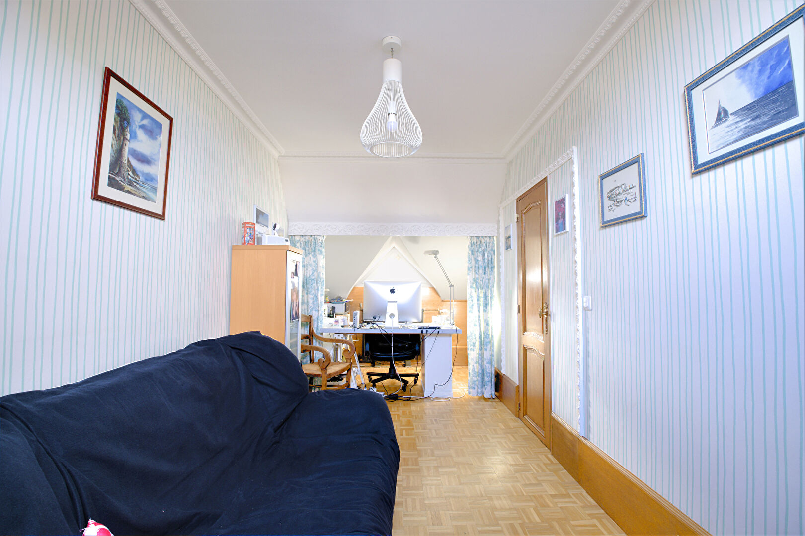 Á l’étage, un grand dégagement de 14m² pouvant servir de bureau, 3 belles chambres avec rangements (possibilité de faire 4 chambres), une salle d’eau comprenant un WC et douche.