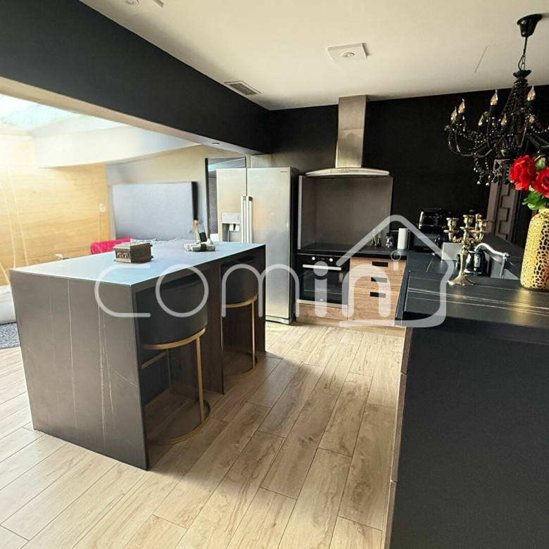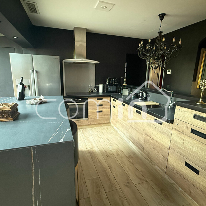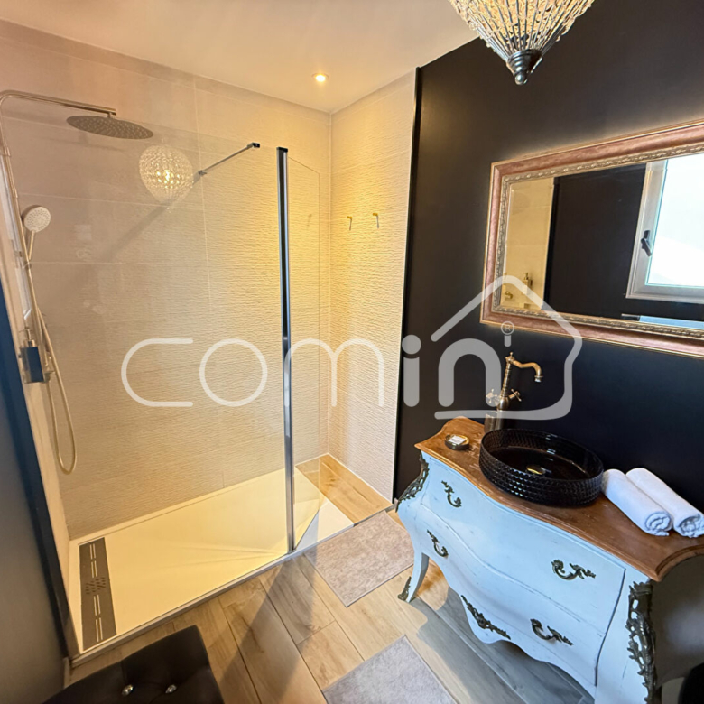 Au niveau inférieur vous trouverez un espace aménagé en cuisine d’été et un coin buanderie avec accès à une terrasse secondaire, idéale pour les moments au frais.