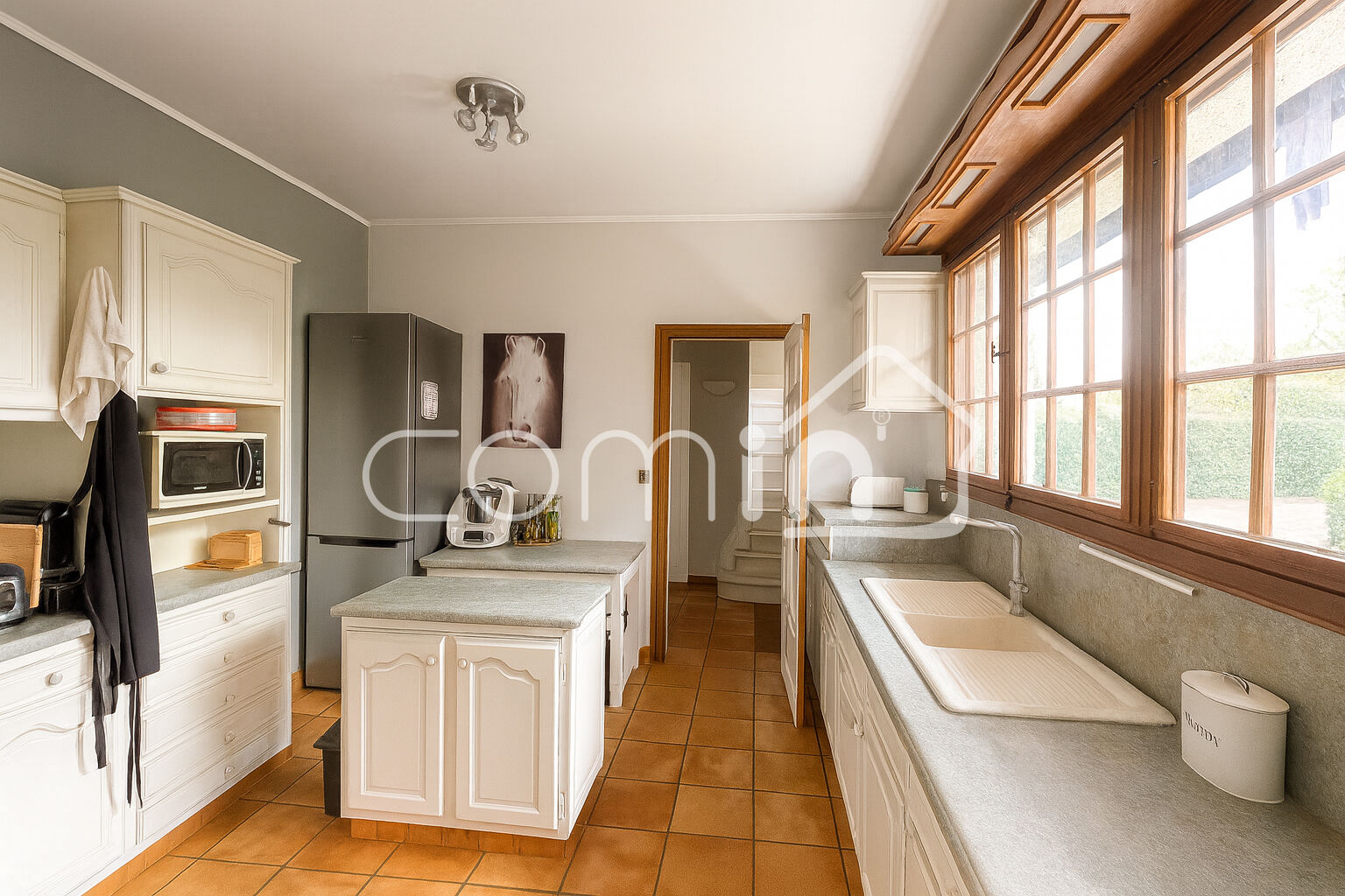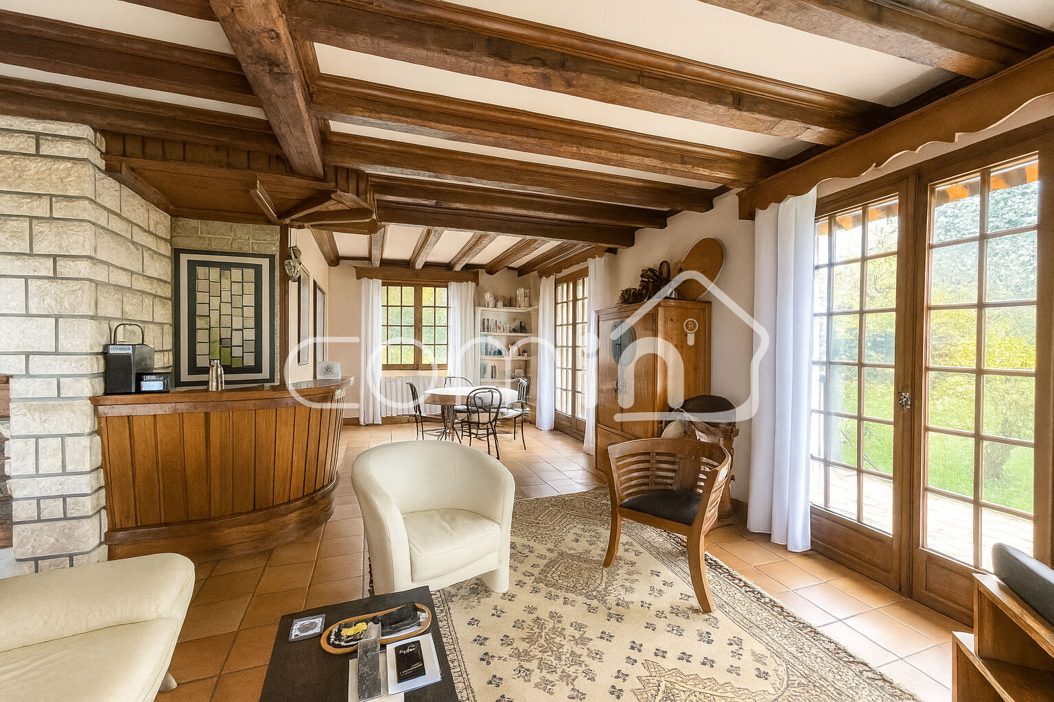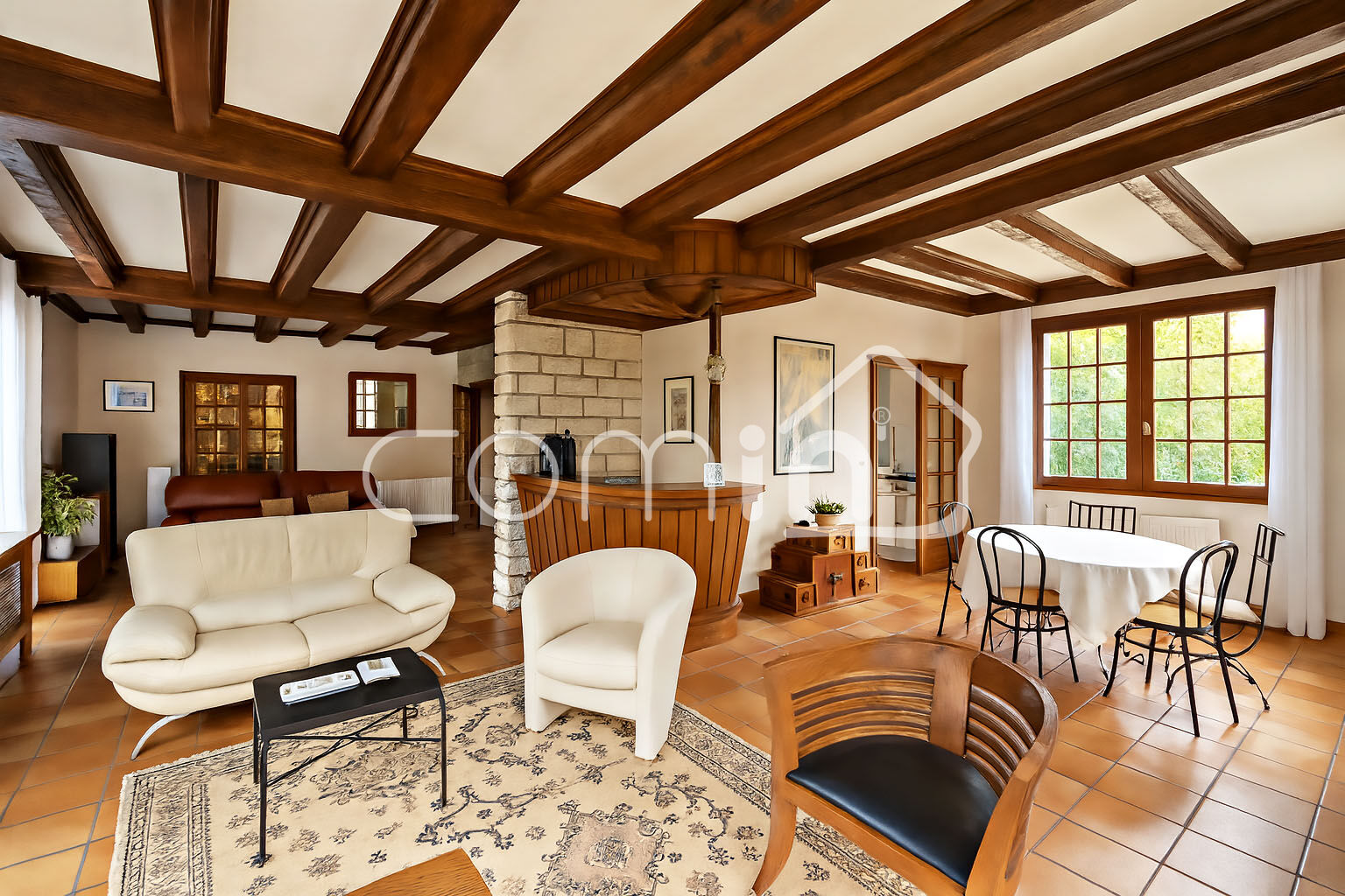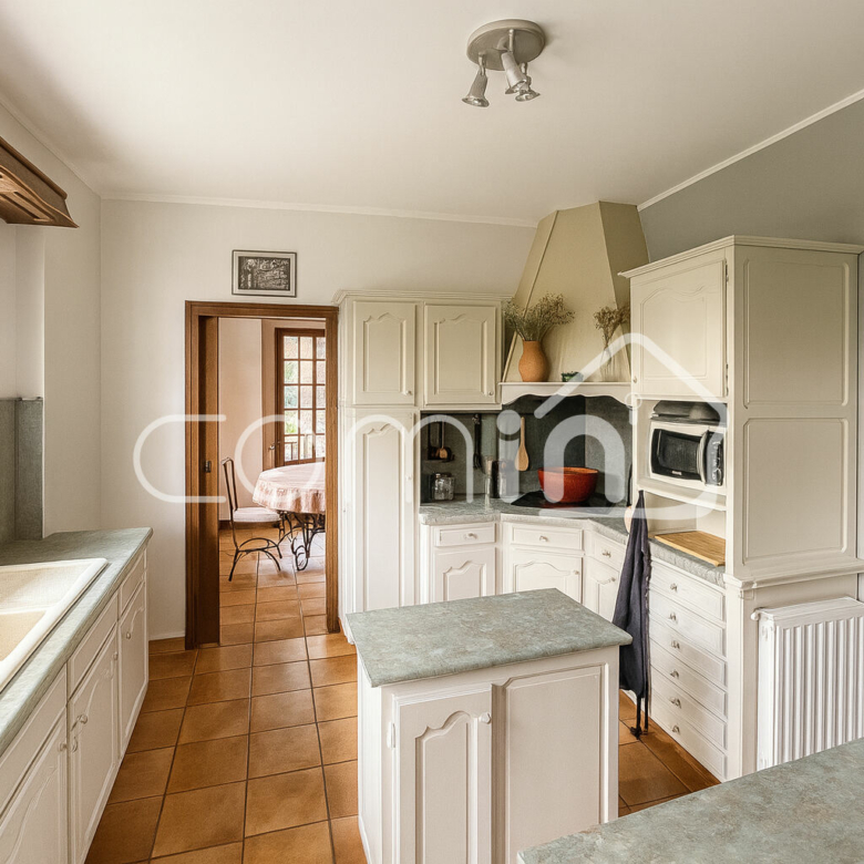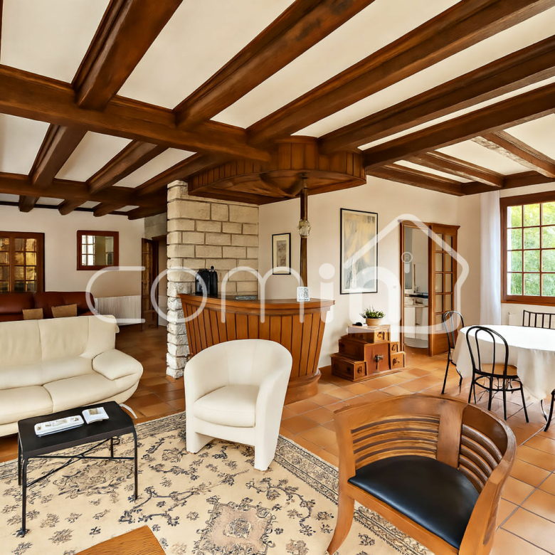 Edifiée sur sous sol total avec un garage de 120m², une cave, une buanderie, une chaufferie (Pompe à chaleur et ballon thermodynamique de 2022).