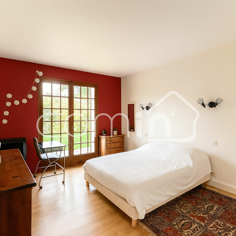 Au rez de chaussée, vous disposerez d’une entrée avec placards, d’un double séjour /salon donnant accès sur terrasse et jardin, une cuisine aménagée/équipée, 2 chambres avec placards, un bureau (ou chambre supplémentaire), une salle de bains, un wc avec lave mains.