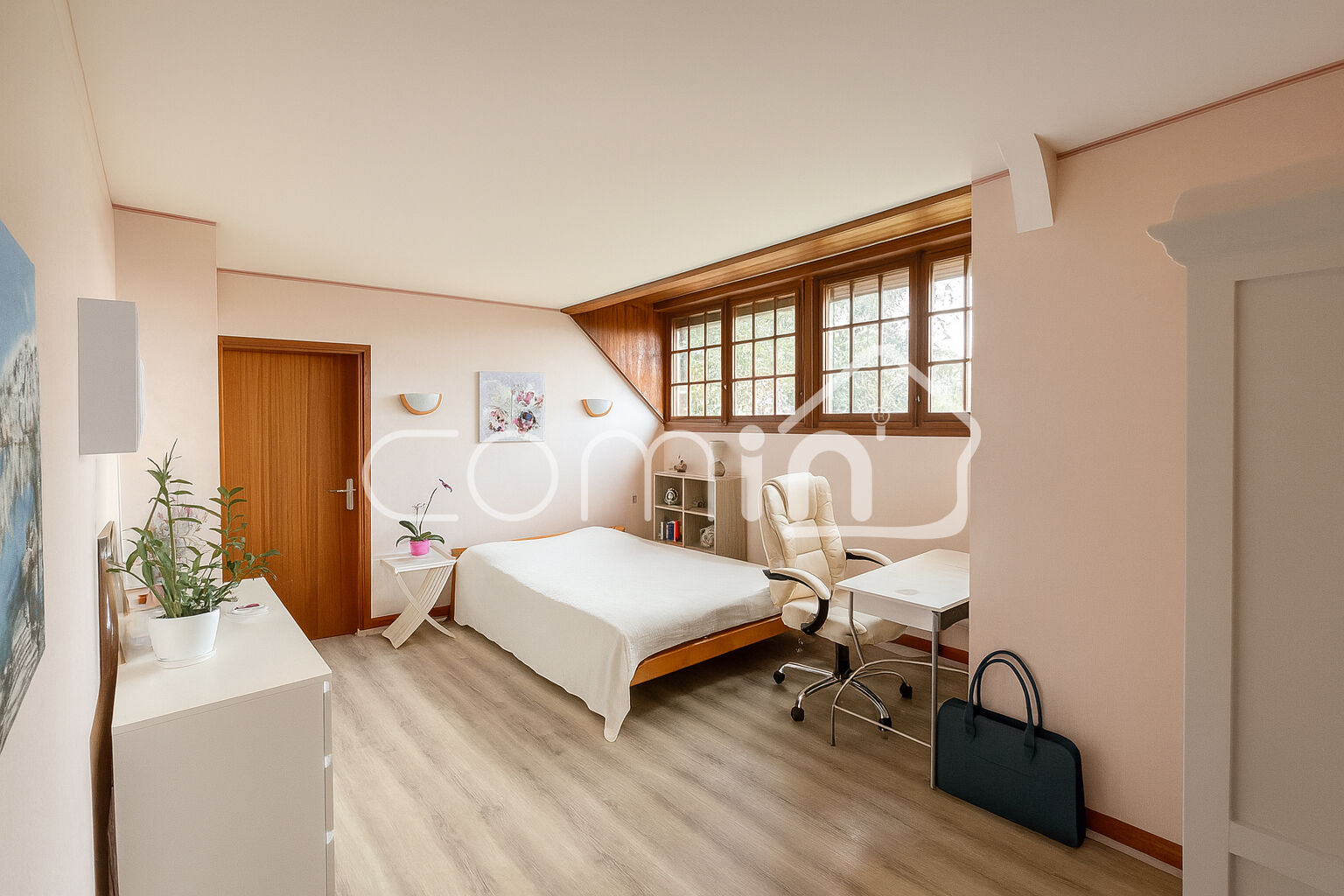 A l’étage ; un palier desservant 3 autres chambres dont une de + de 40m², une salle d’eau, un wc et un grenier aménageable d’environ 26m² situé sur le même niveau.