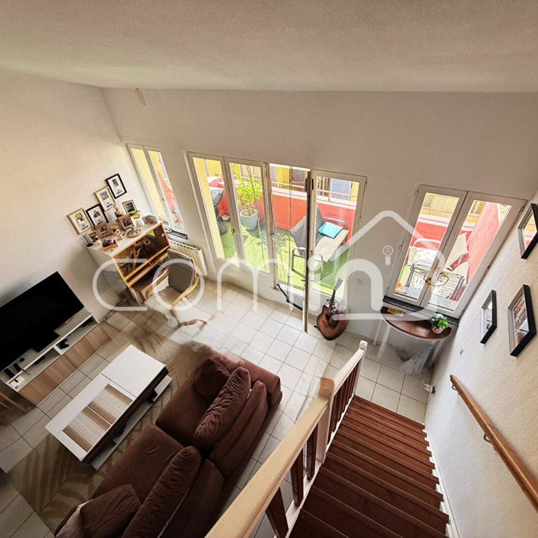 _Premier étage: un pièce à vivre traversante avec une cuisine entièrement équipée – aménagée ouverte sur salle à manger et séjour, et deux belles terrasses de chaque coté de 10m2 dont une avec vue mer.