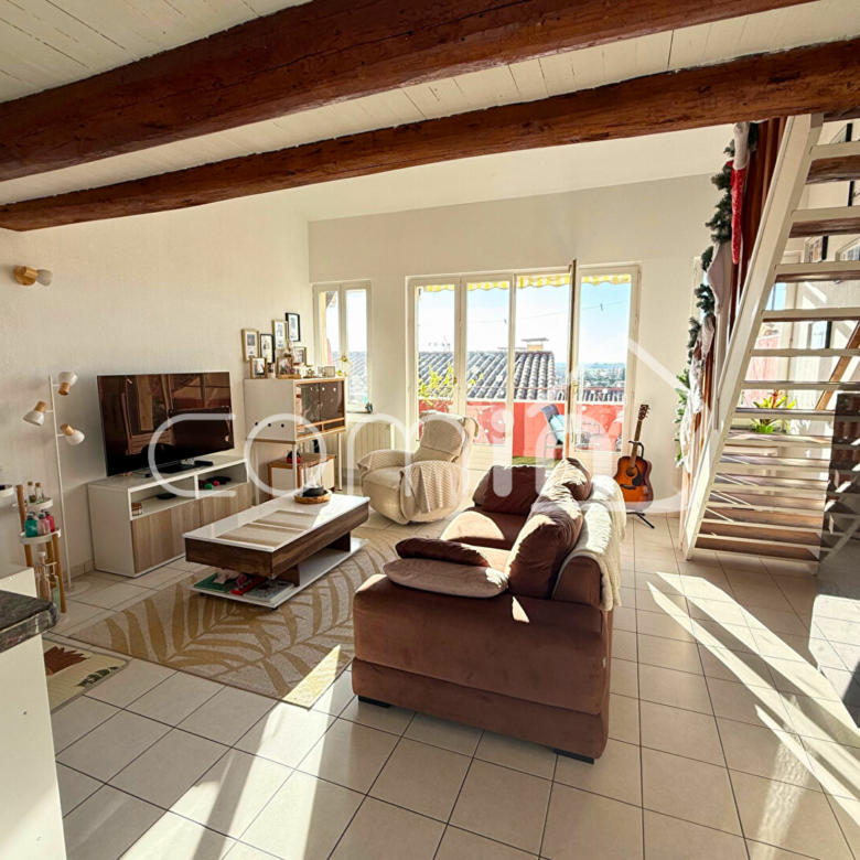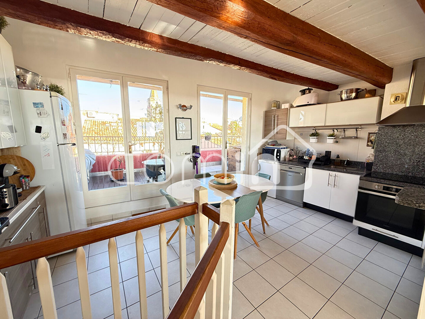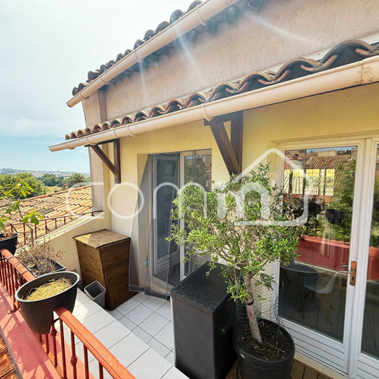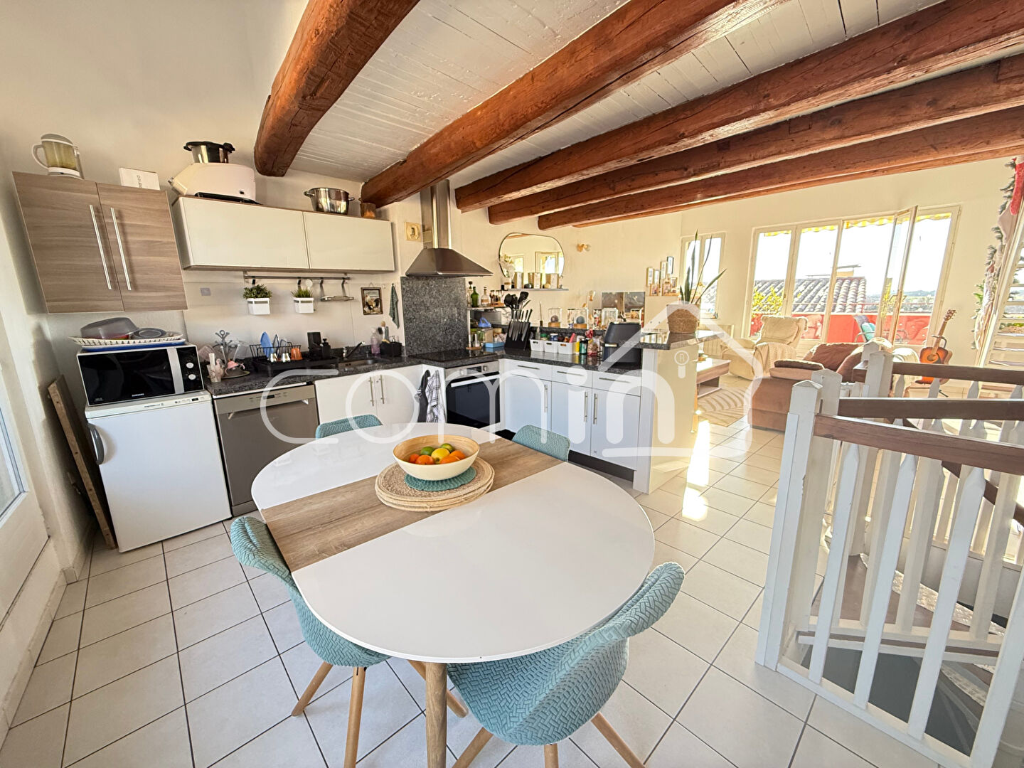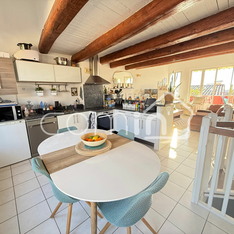 _Premier étage: un pièce à vivre traversante avec une cuisine entièrement équipée – aménagée ouverte sur salle à manger et séjour, et deux belles terrasses de chaque coté de 10m2 dont une avec vue mer.