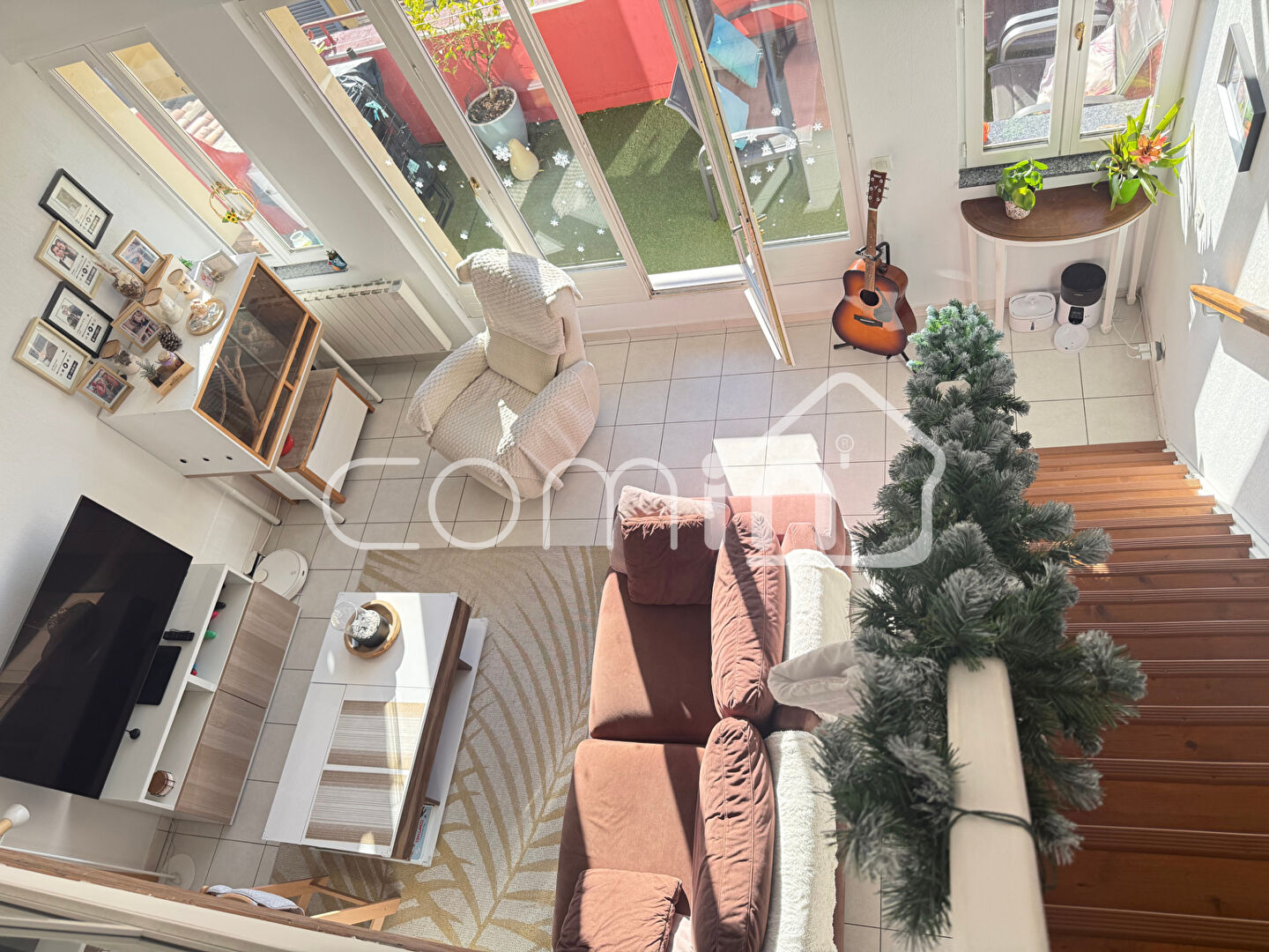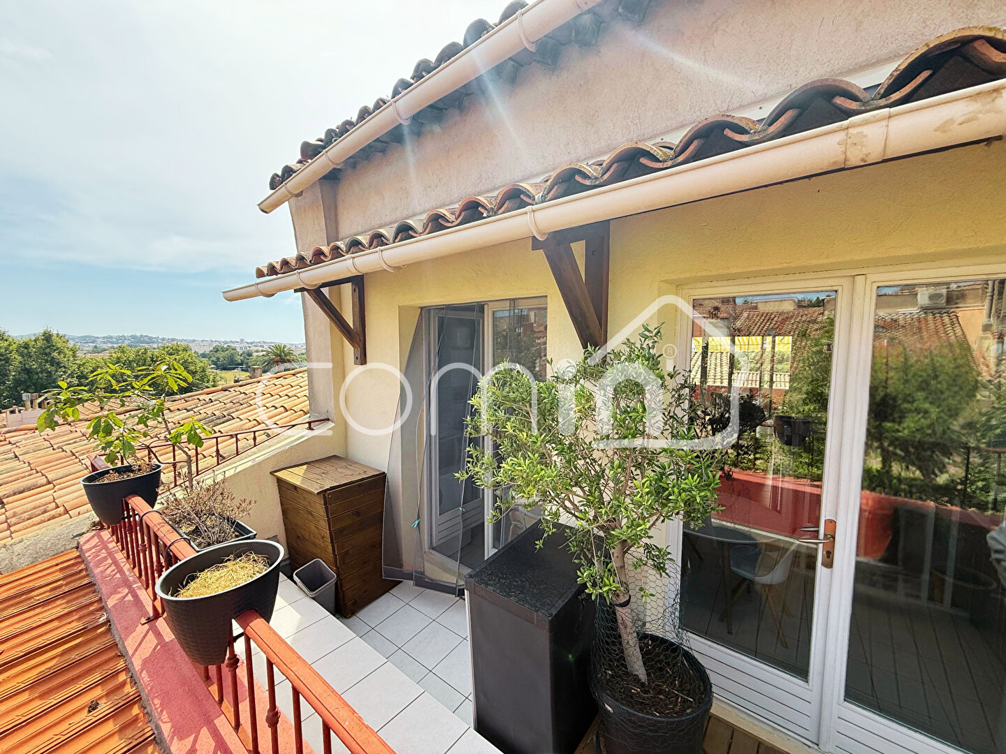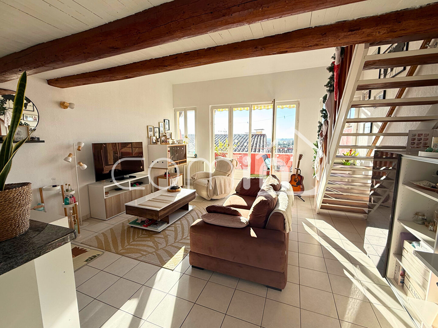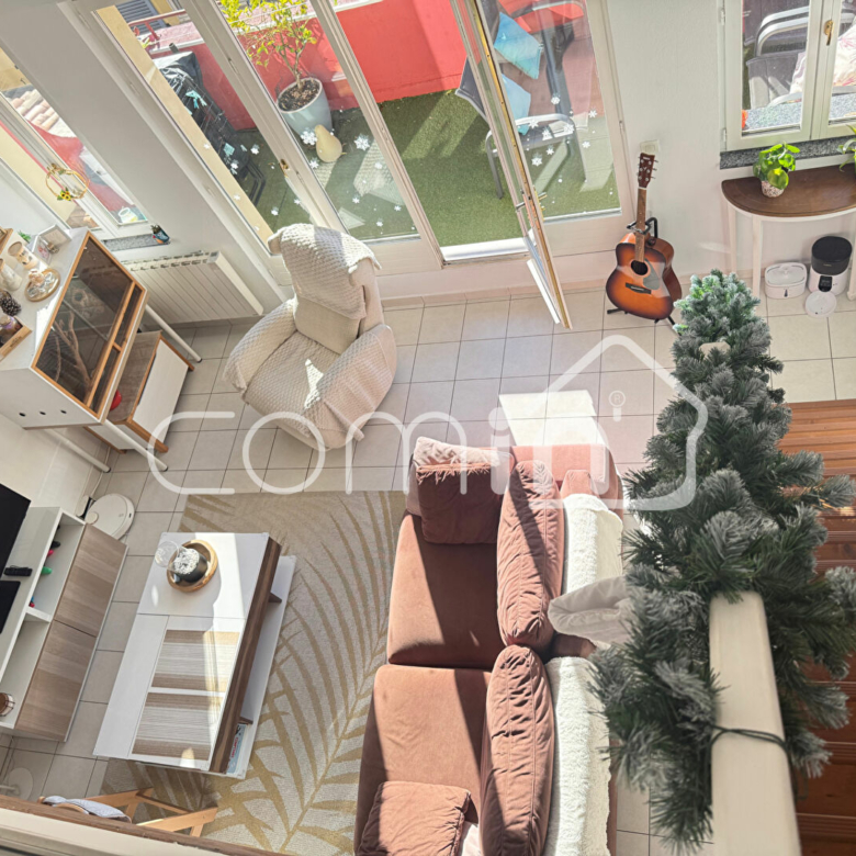 _Premier étage: un pièce à vivre traversante avec une cuisine entièrement équipée – aménagée ouverte sur salle à manger et séjour, et deux belles terrasses de chaque coté de 10m2 dont une avec vue mer.