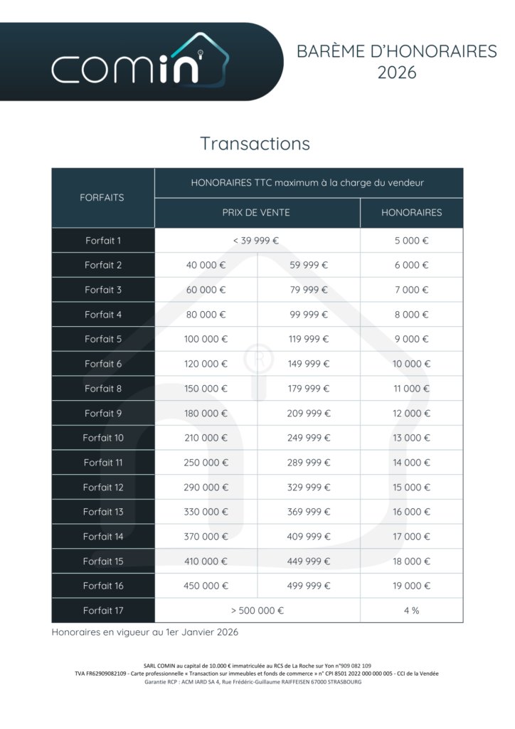 FORFAITSHONORAIRES TTC maximum à la charge du vendeur